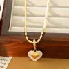 Cadena Clavicular Corazón Natural Nácar Oro Real 18K Acero Titanio Liso Nicho Ins Frío Aliento de Bebé Collar para Mujer 078