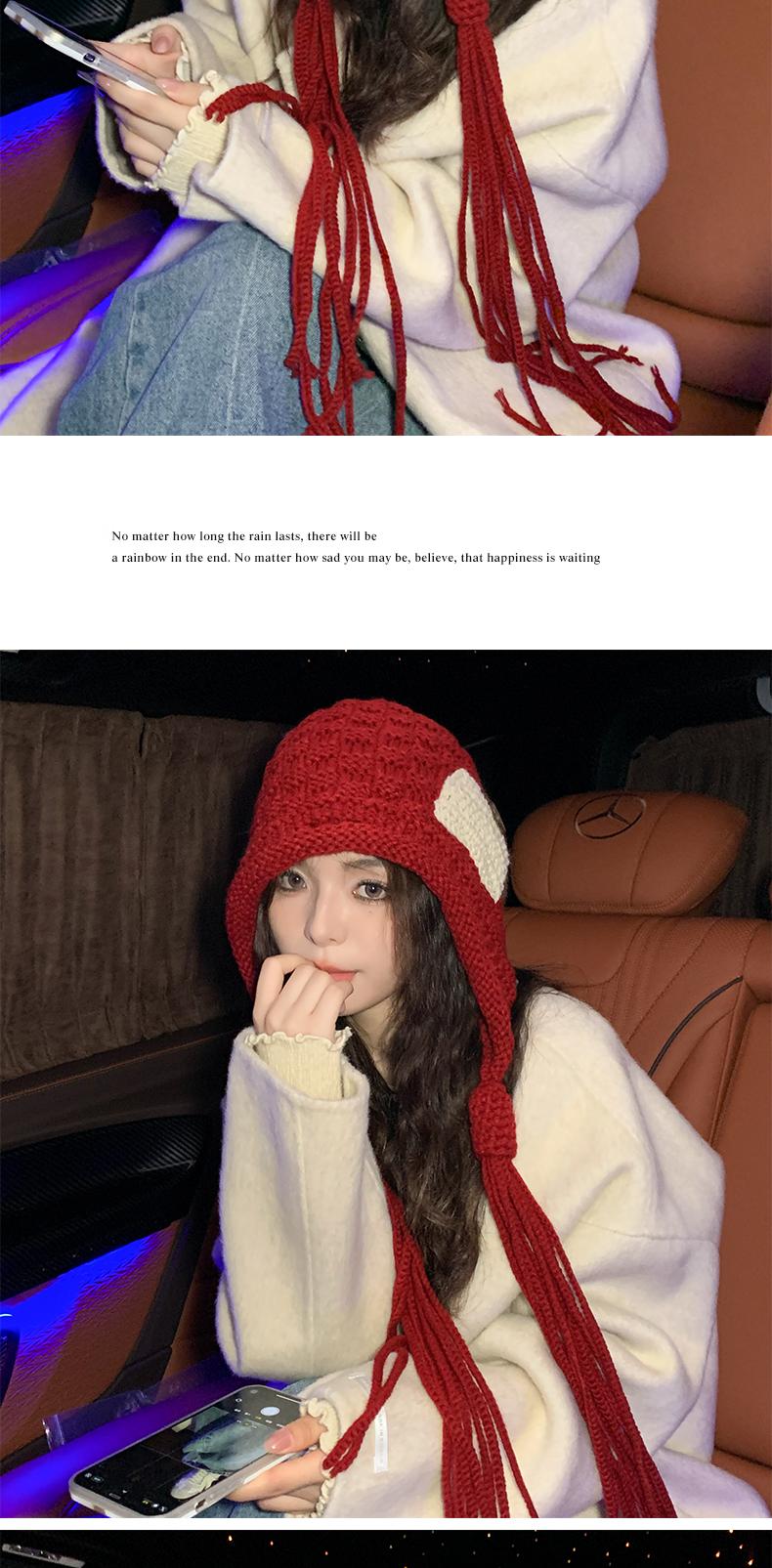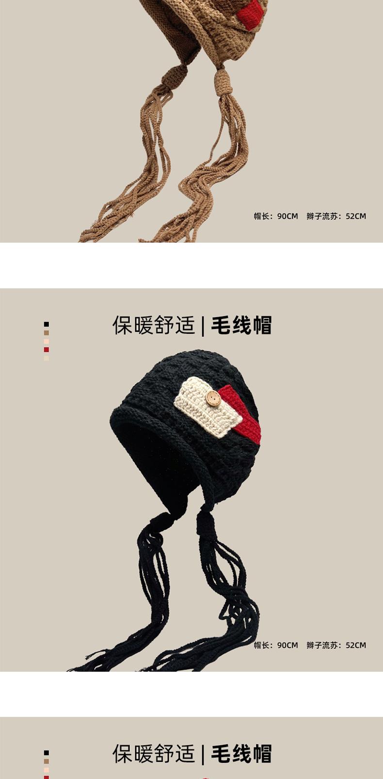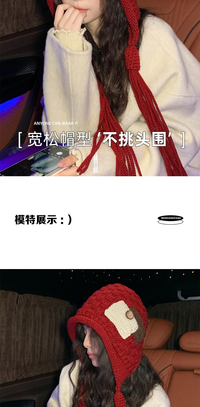 Red (button color matching-long tassel cap), Beige (button color matching-long tassel cap), Khaki (button colo...