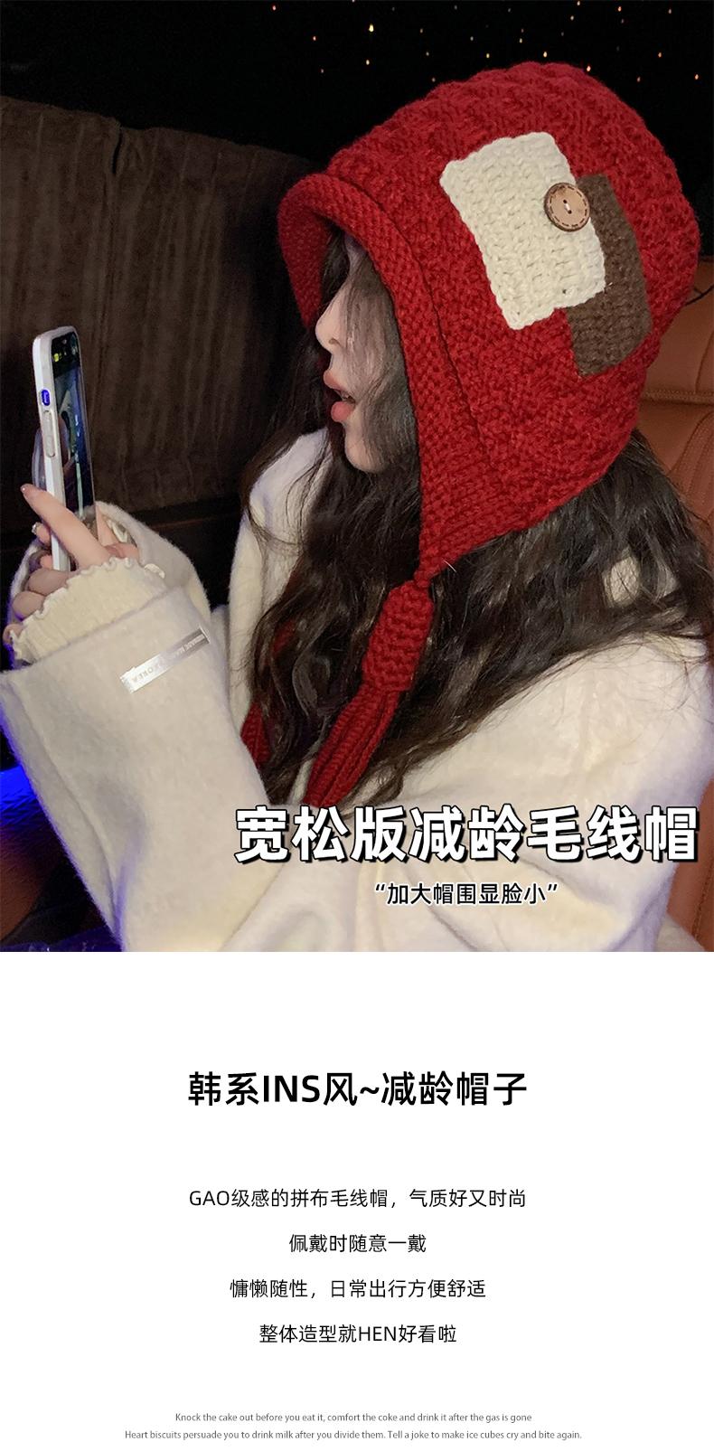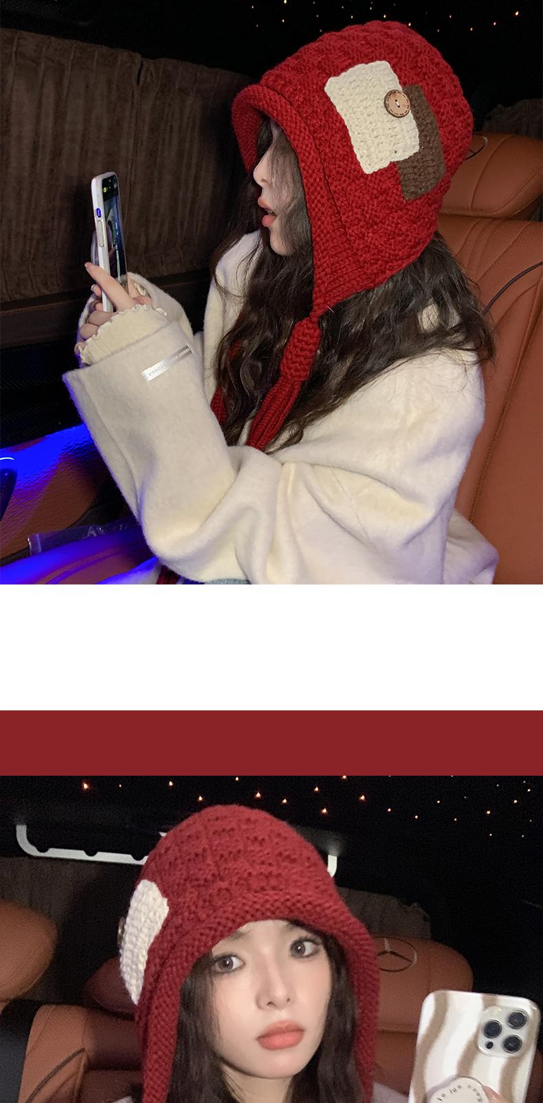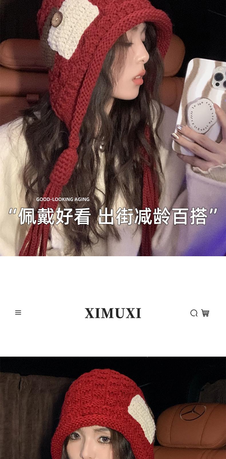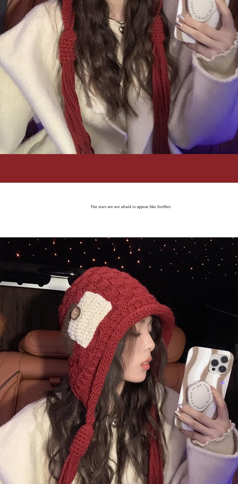 Red (button color matching-long tassel cap), Beige (button color matching-long tassel cap), Khaki (button colo...