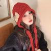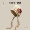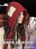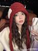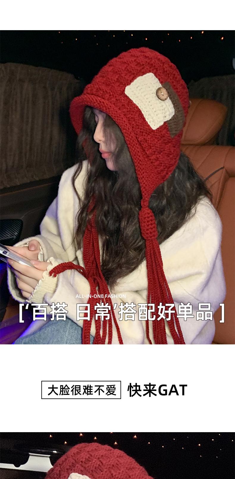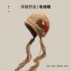 2023 nuevo gorro de lana roja con borlas y parche de moda para mujer, gorro de punto trenzado hecho a mano cálido para otoño e invierno, moda