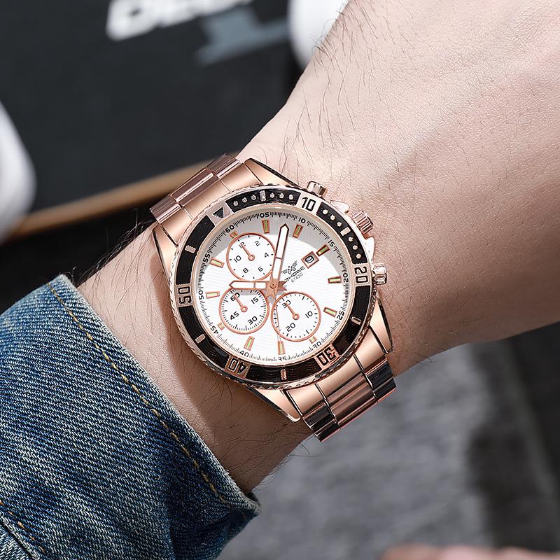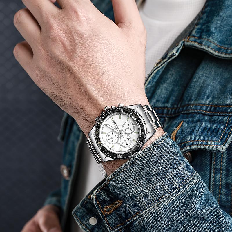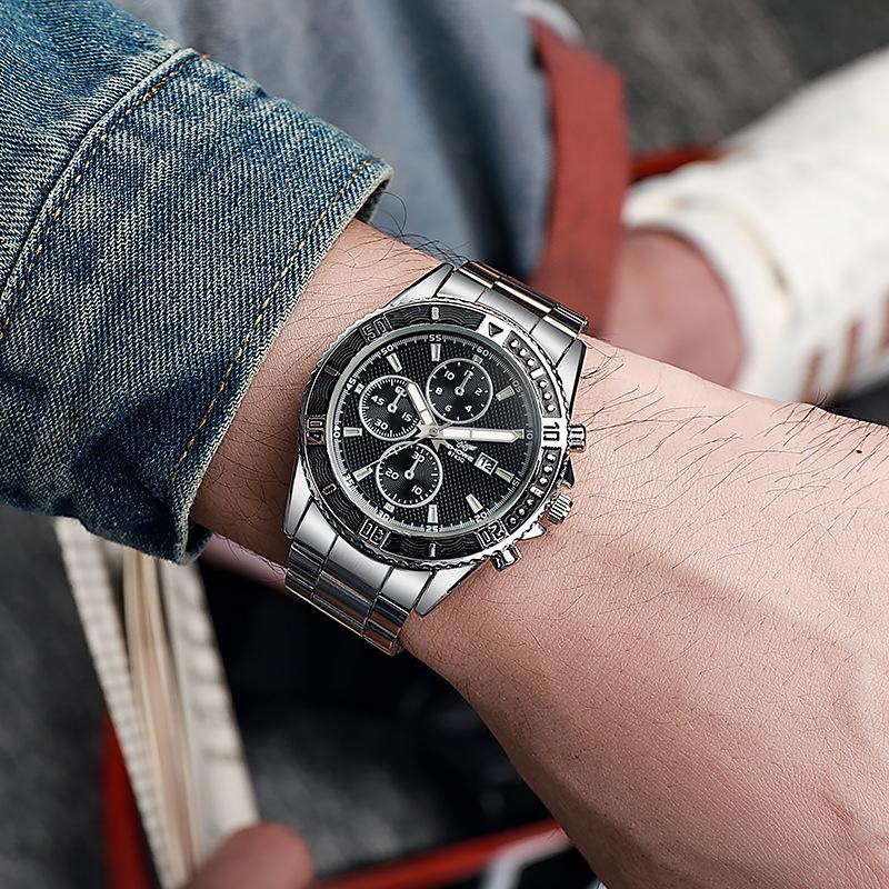 2023 nuevo transfronterizo europeo y americano esfera grande falso Tres ojos Deportes Ocio Tendencia reloj de cuarzo para hombre con correa de acero al por mayor