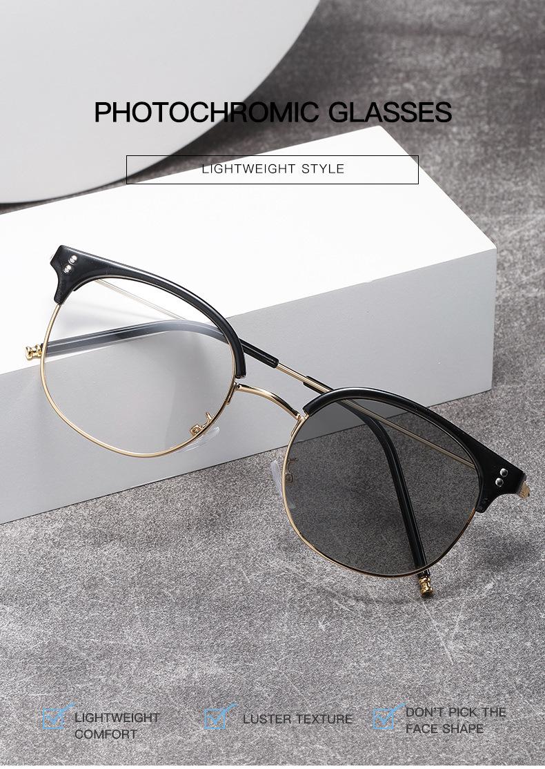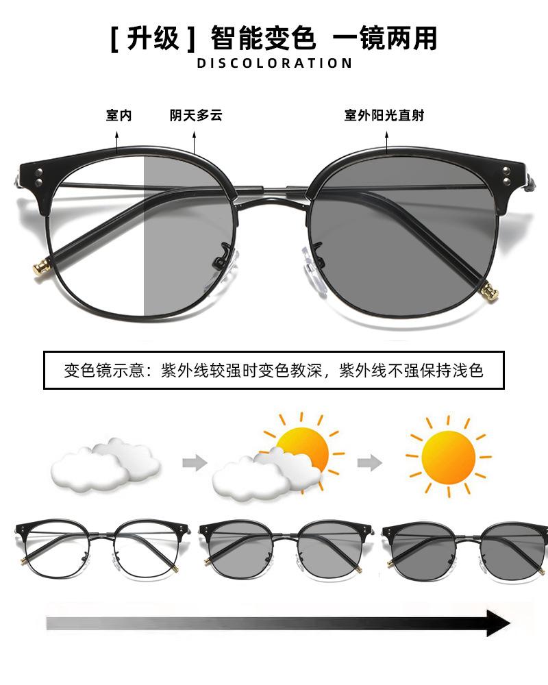 Gafas de moda de metal que cambian de color con luz anti-azul, personalidad, marco de gafas mi nail, marco de gafas transfronterizo, nuevas gafas que cambian de color