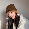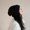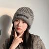 Gorro de lana negro para mujer, cálido, para otoño e invierno, pequeño, estilo coreano, a la moda, combinable, de punto suelto con cabeza grande.