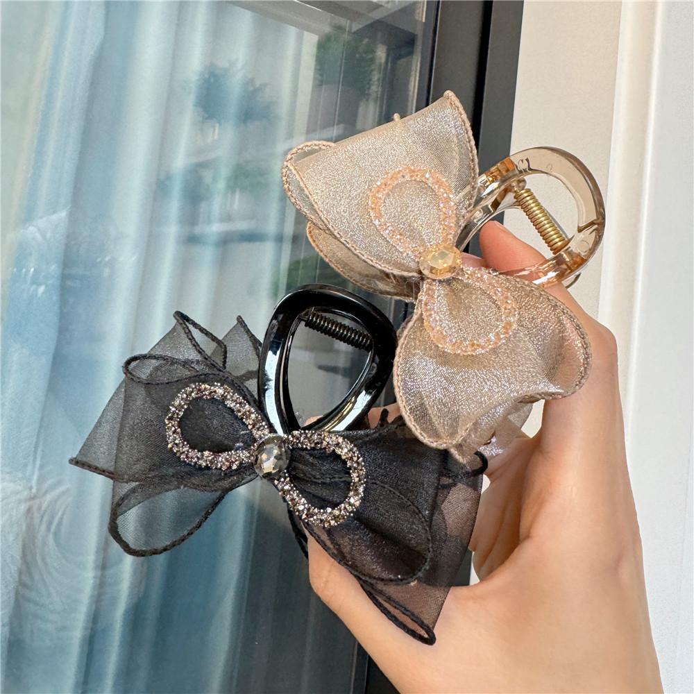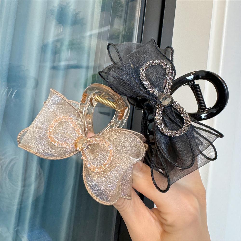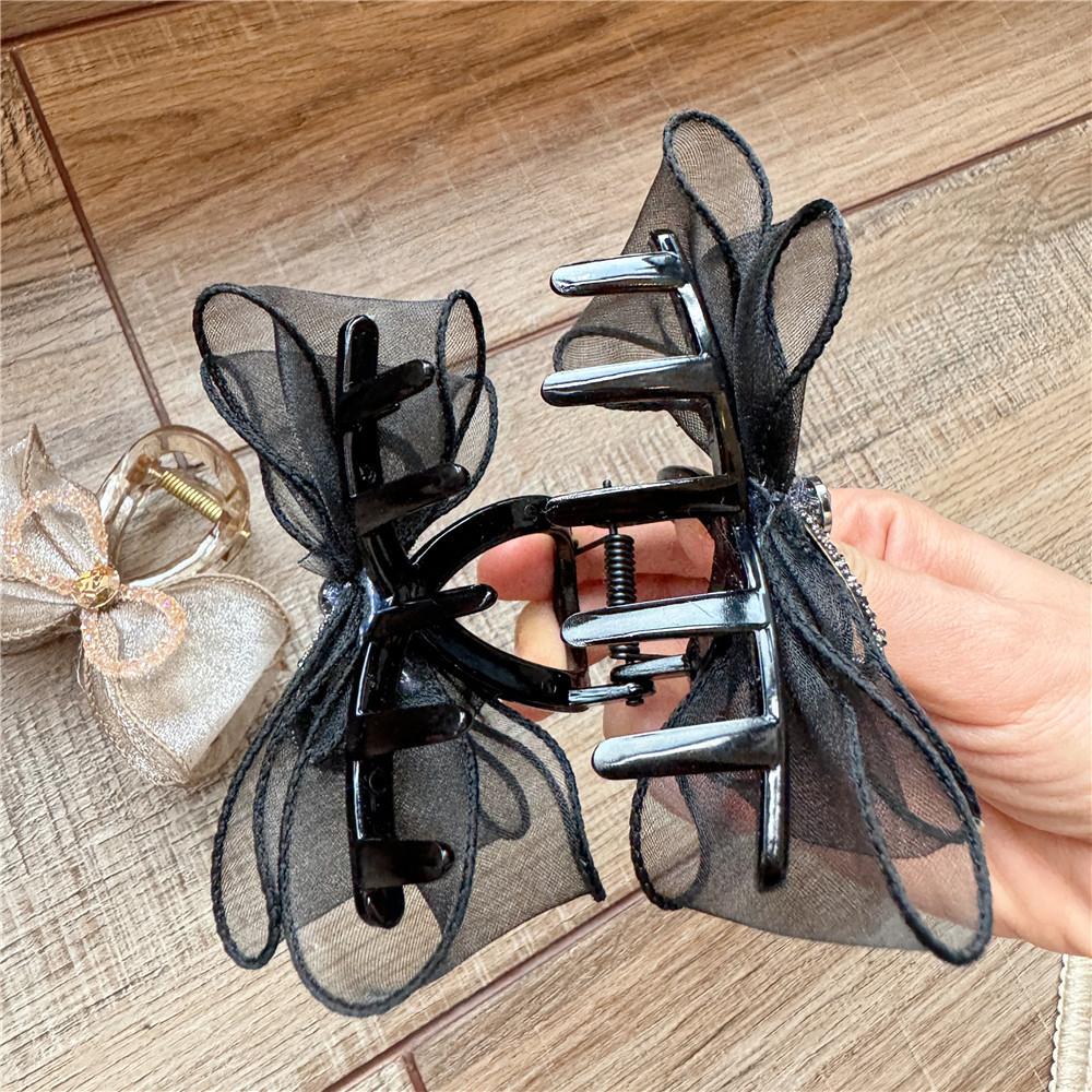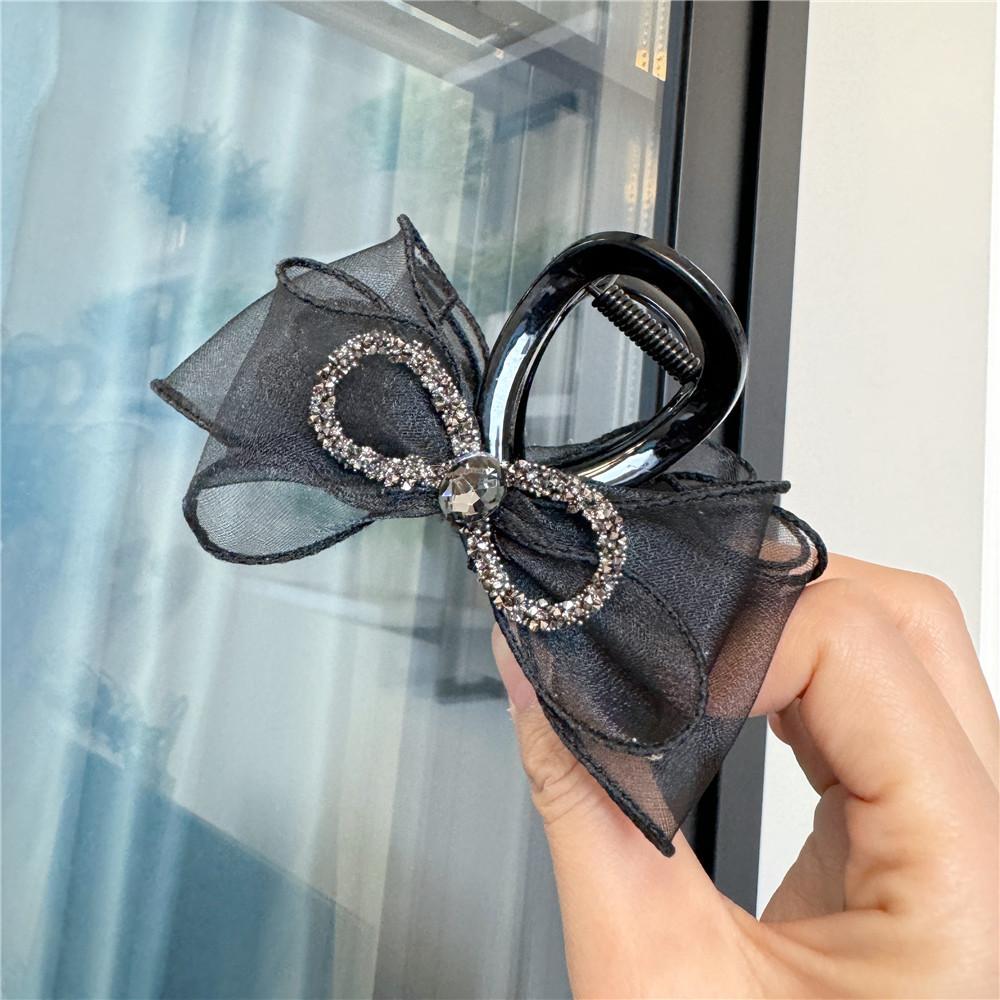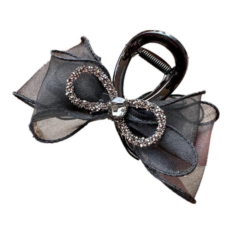 A170 Horquilla de Malla de Hada con Lazo Pedrería Organza Parte Posterior de la Cabeza Horquilla Negra de Alta Gama Accesorio para el Cabello