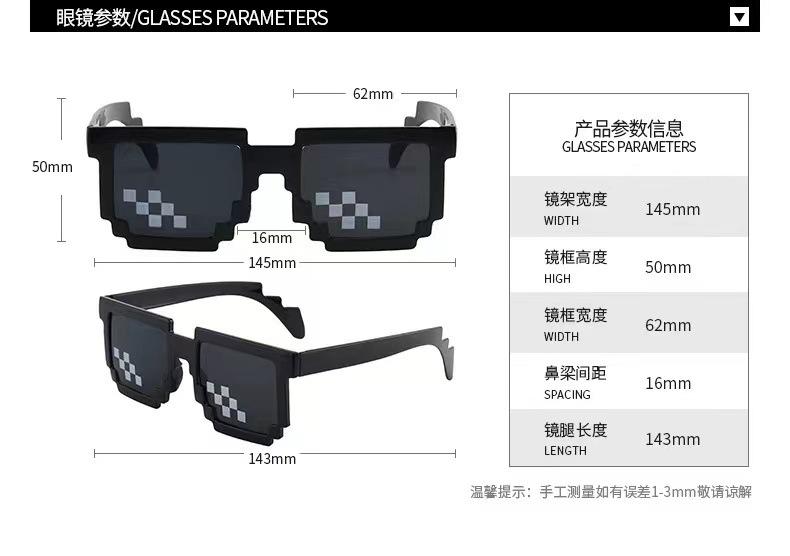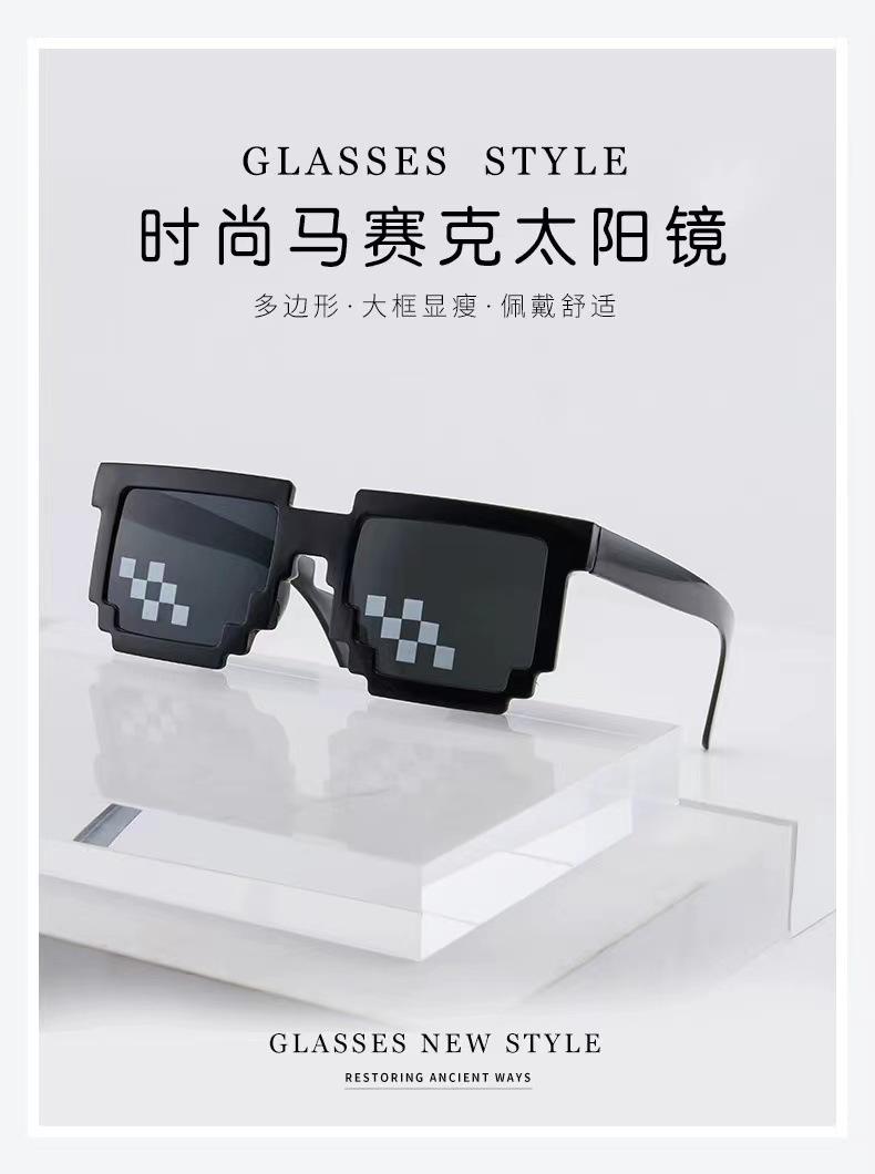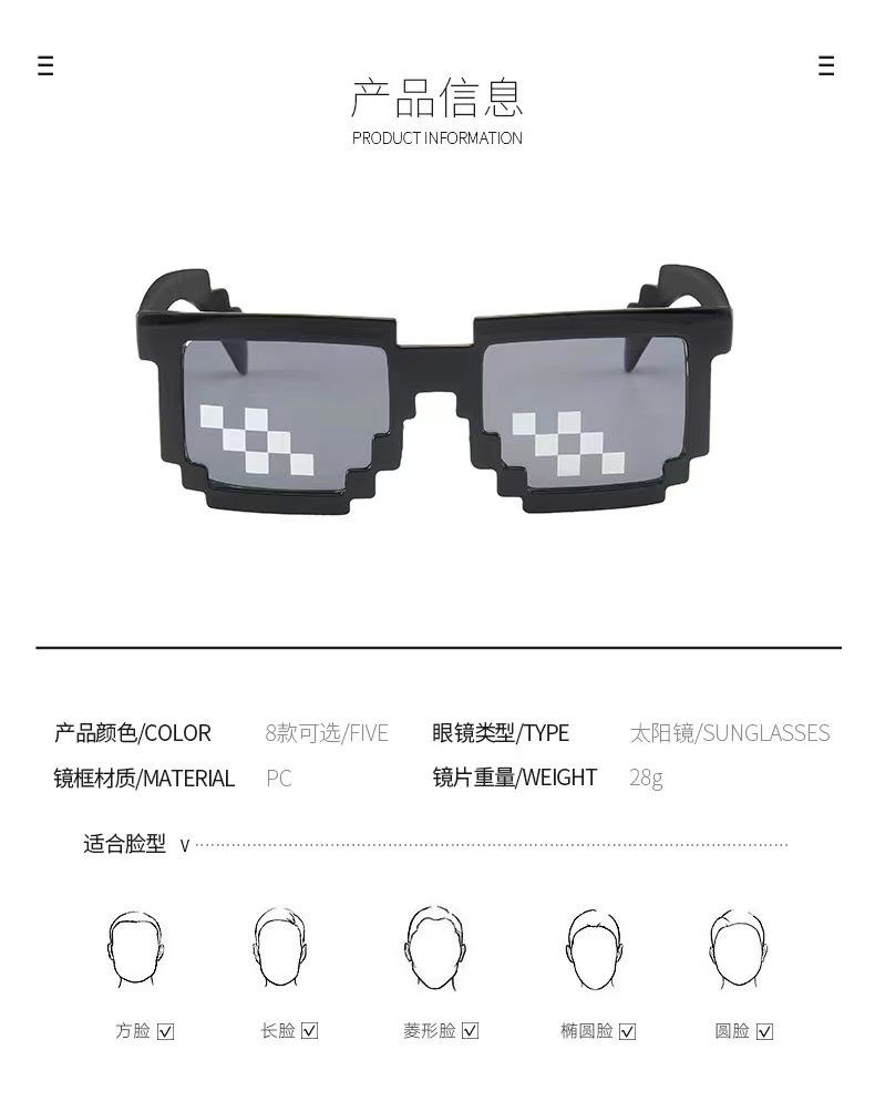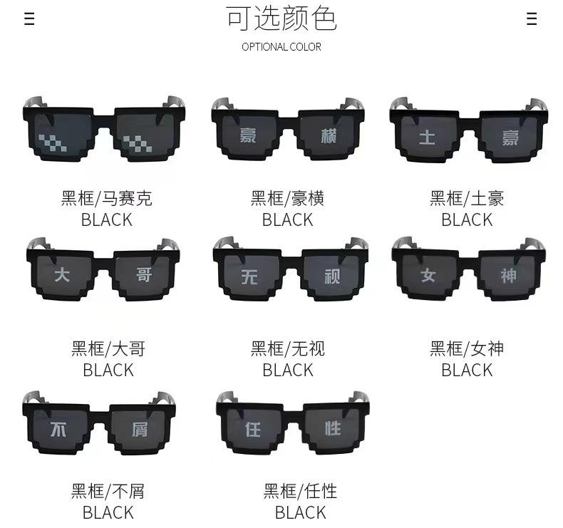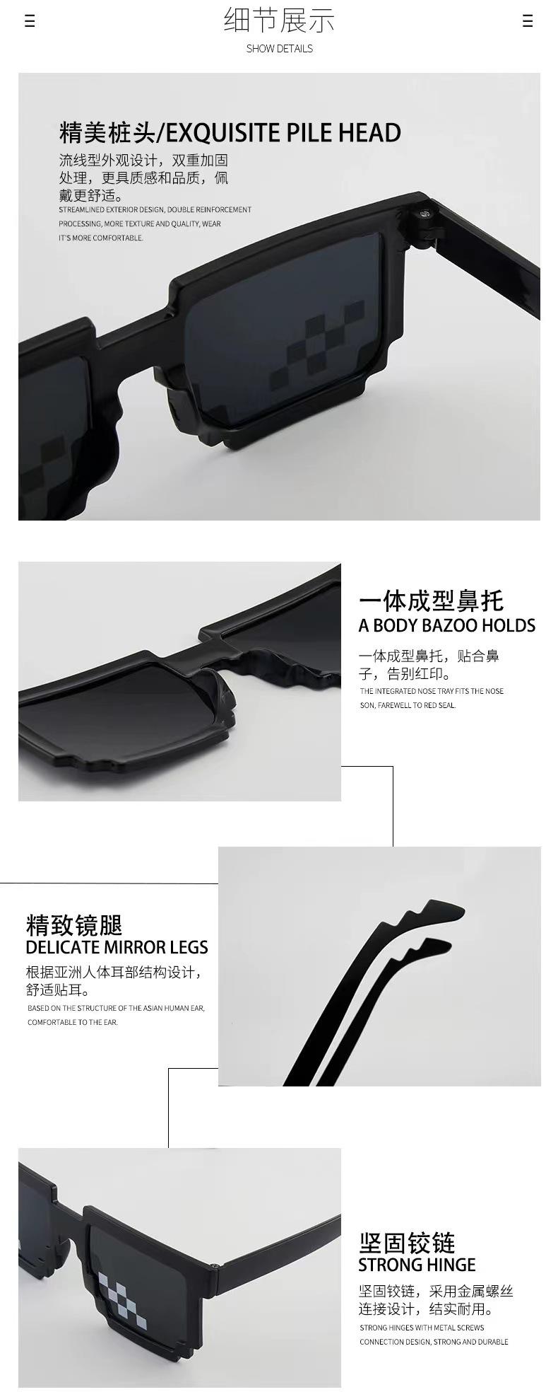 Gafas de mosaico TikTok chico social parodia de boda bidimensional dama de honor reunión anual codificación gafas de sol de píxeles