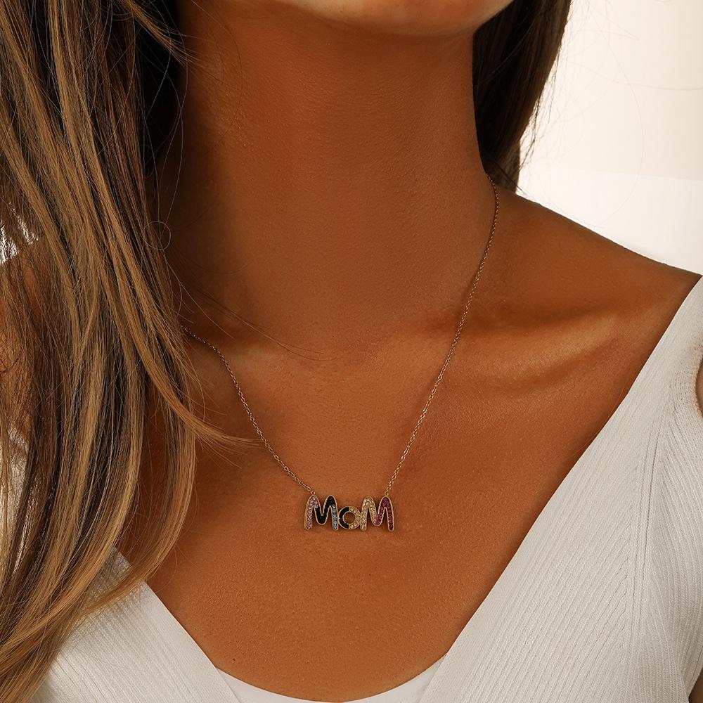 Collar corto con colgante de letra simple de acero inoxidable dorado con diamantes de colores, joyería de Amazon.
