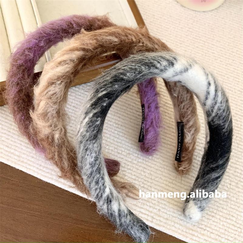 Diadema de lana con estampado de colores variados para otoño e invierno, tocado de calavera para niña, diadema para lavarse la cara, accesorios para el cabello de alta calidad para mujer
