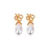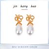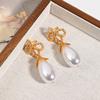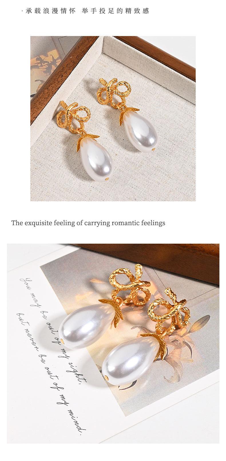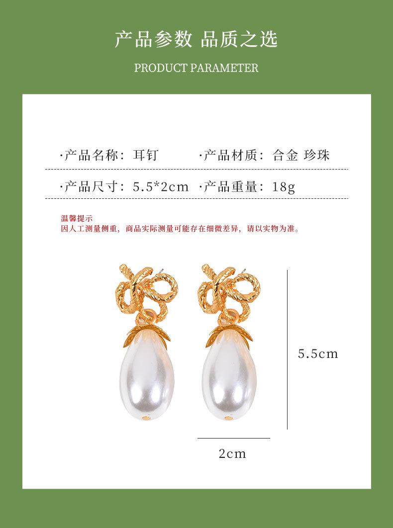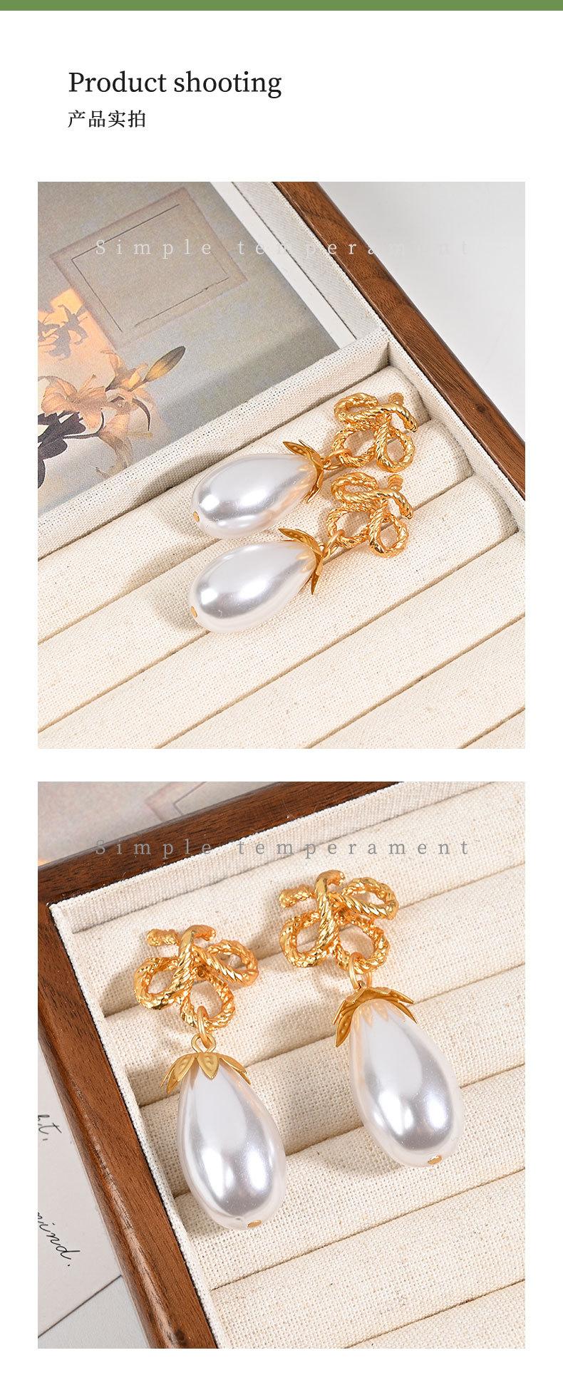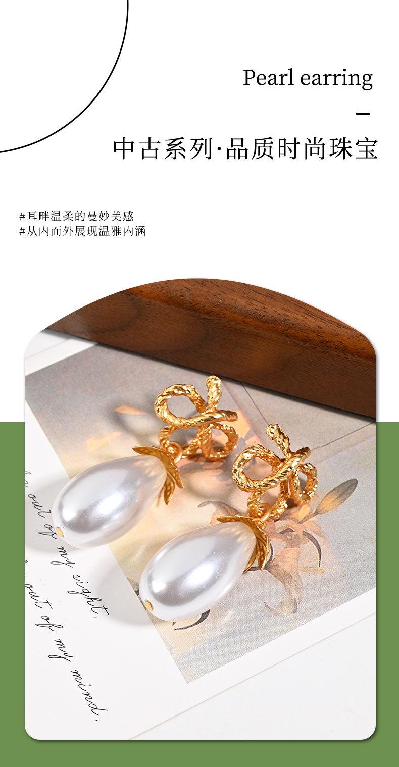 Pendientes elegantes de perlas para mujer, diseño retro francés elegante, pendientes sencillos de nicho, pequeños accesorios para las orejas de viaje.