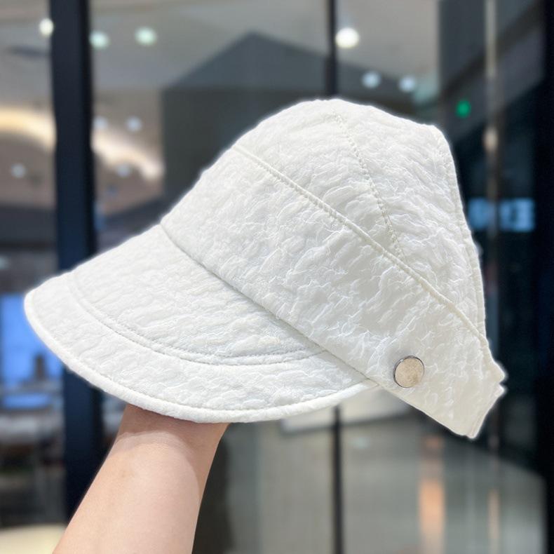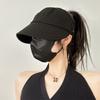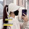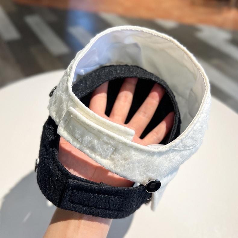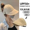 Sombrero de copa superior vacío de seersucker mejorado para mujer, sombrero para el sol de primavera y verano con protección solar, se puede atar una coleta alta, gorra con visera que hace que el rostro se vea pequeño