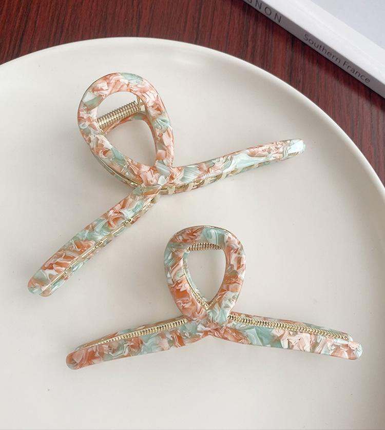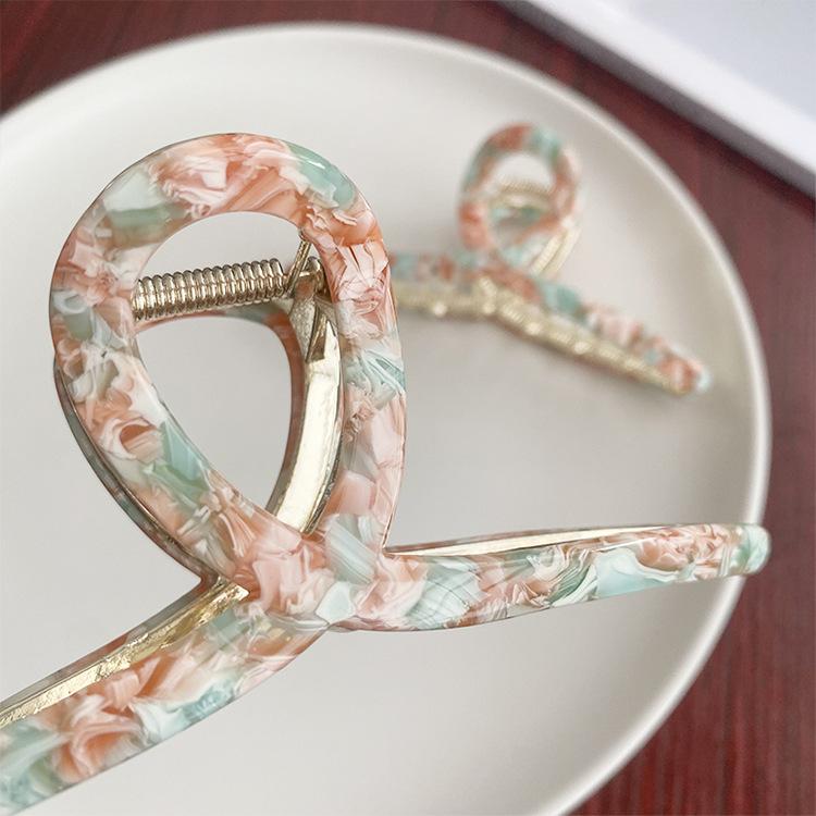 Pinza para el pelo coreana de gran tamaño con ácido acético, pinza para el pelo multicabezal con diseño de tiburón floral, accesorios para el cabello de aleación de alta gama para mujer.