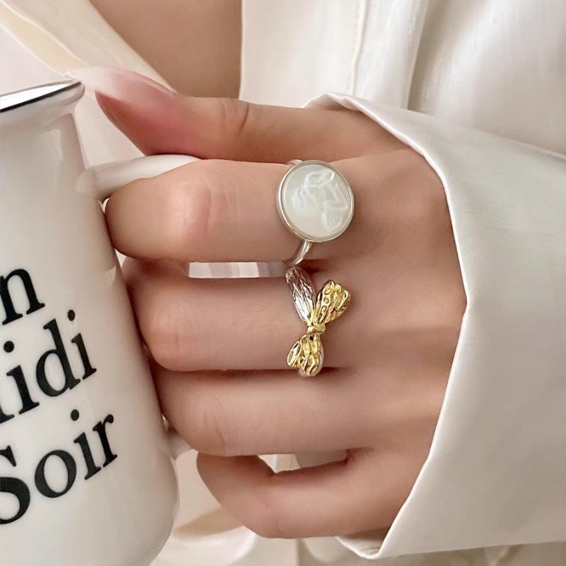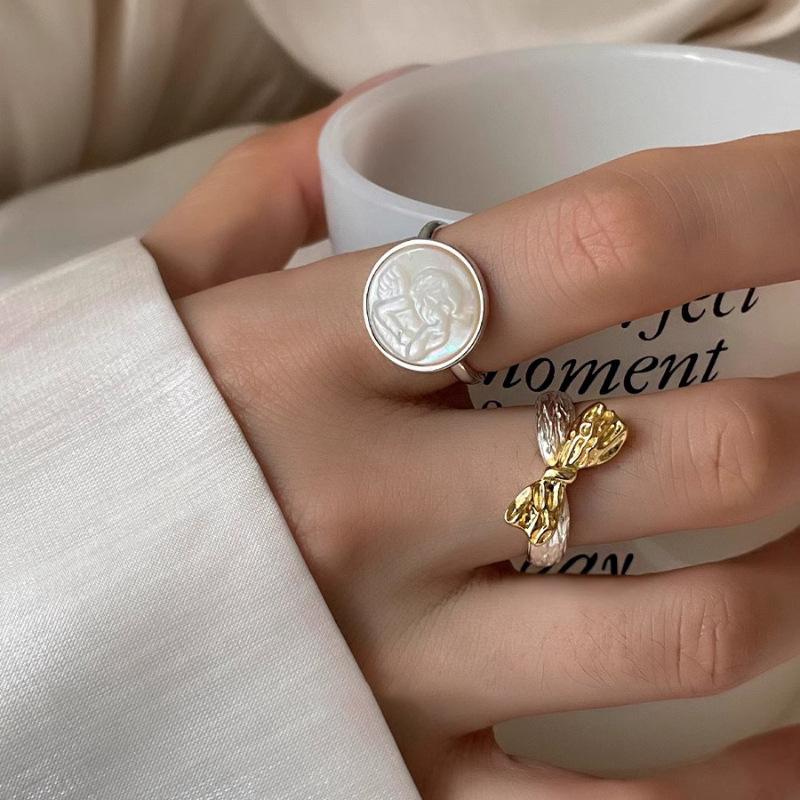 Anillo de Concha de Ángel Soñador de Diseño Nicho para Mujer, Lazo Moderno y Único, Anillo de Dedo Índice Versátil Simple de Alta Gama