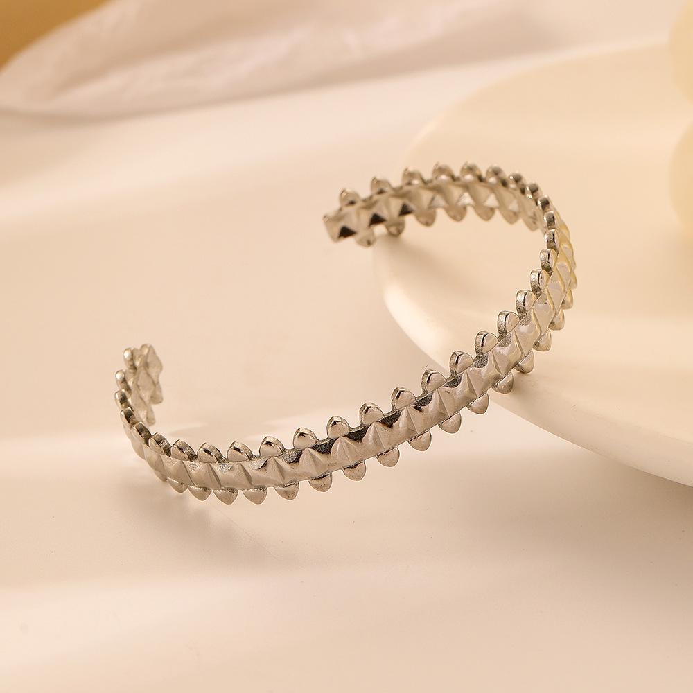 Moda europea y americana personalidad simple transfronterizo acero inoxidable Abierto pulsera geométrica de diamantes para mujer joyería pulsera de acero de titanio