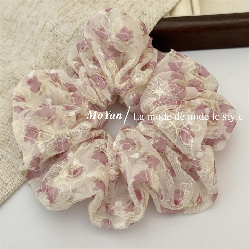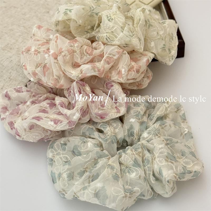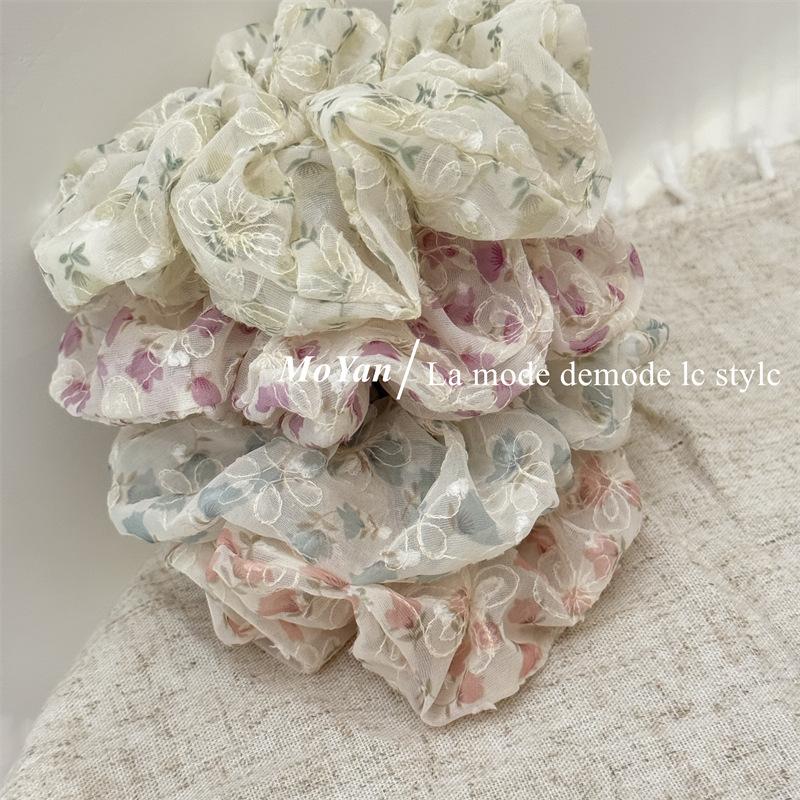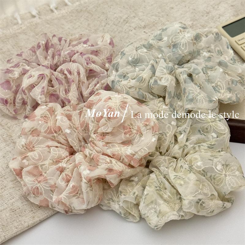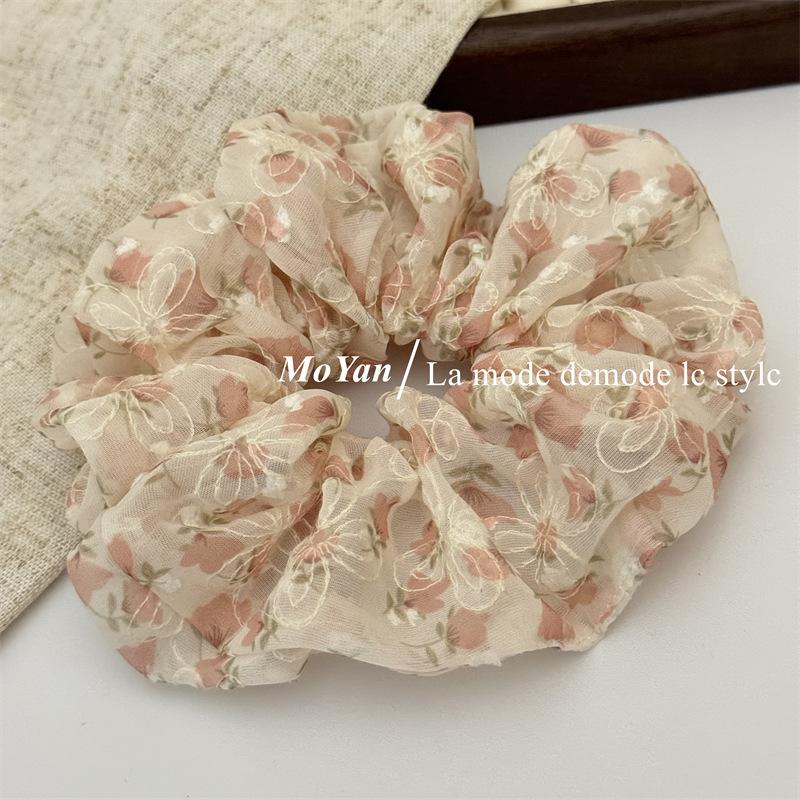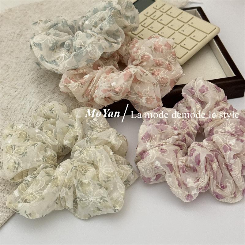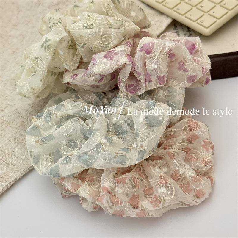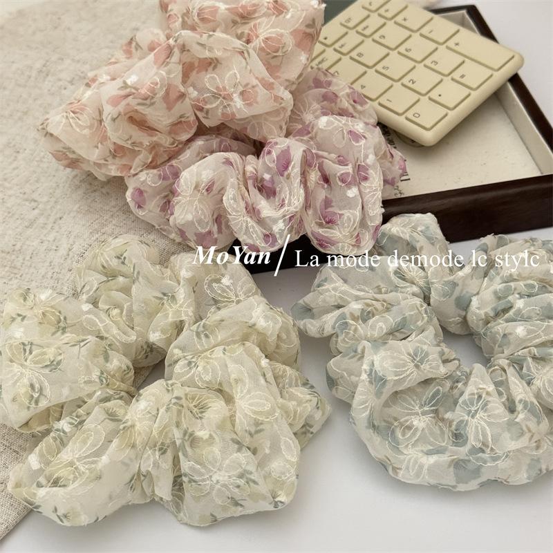 Mori Malla Estampada Bordada Anillo para el Cabello Intestino Grueso para Mujer 2024 Nuevo Sentido de Alta Gama Cuerda para el Cabello Vintage Flor para el Cabello