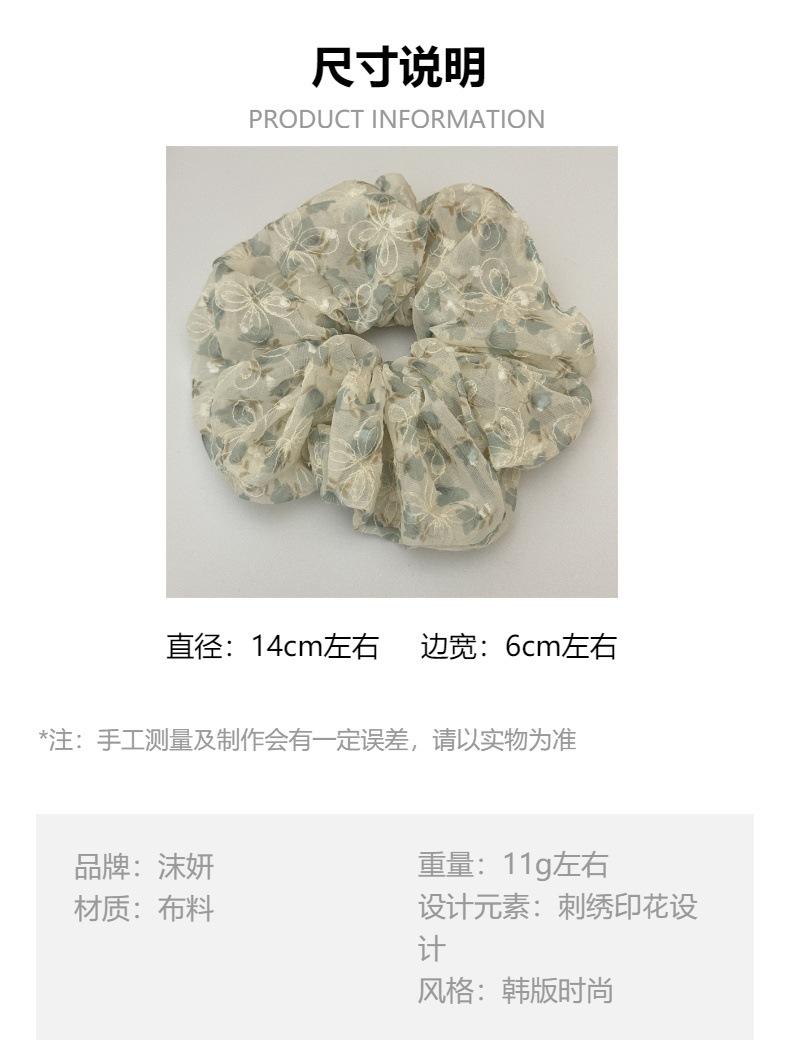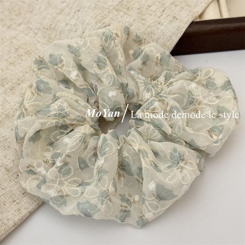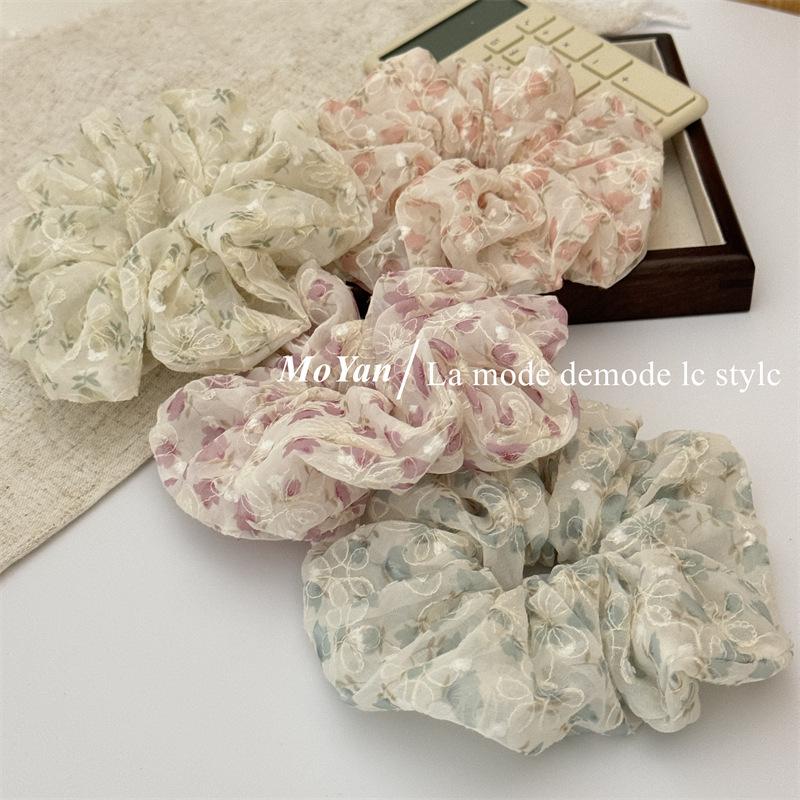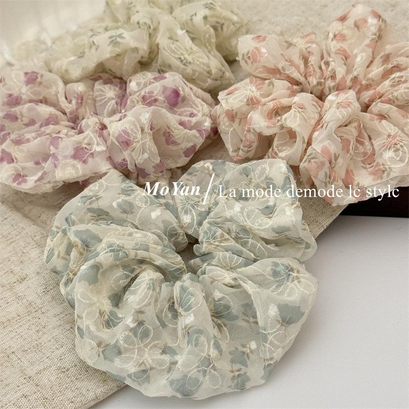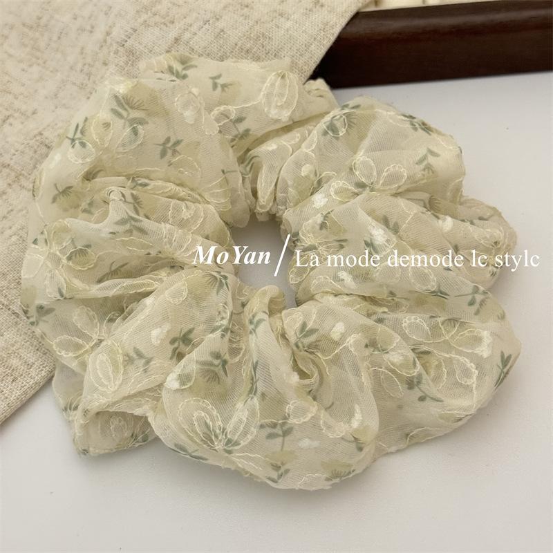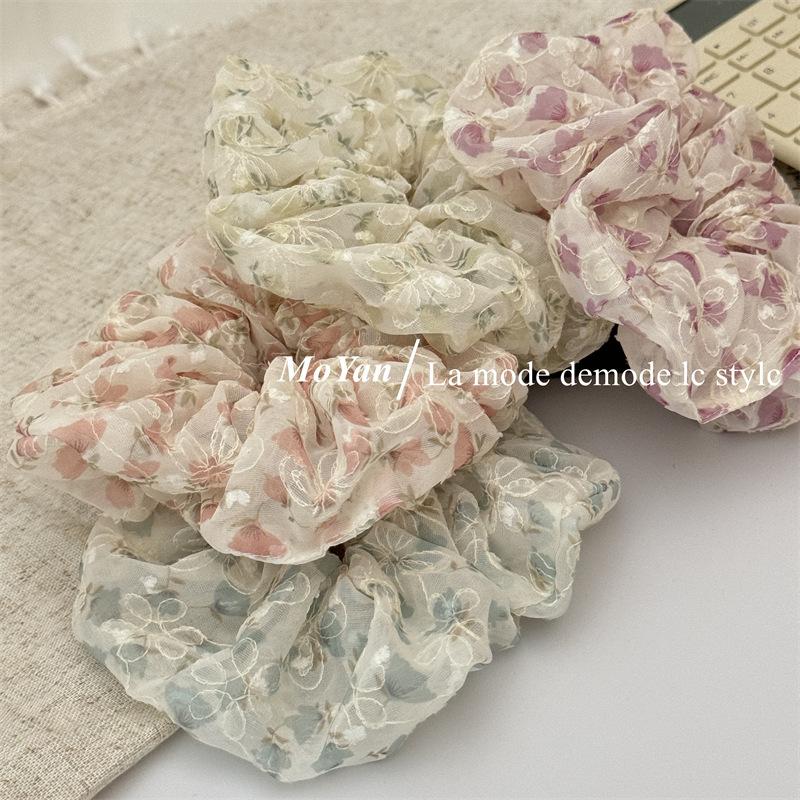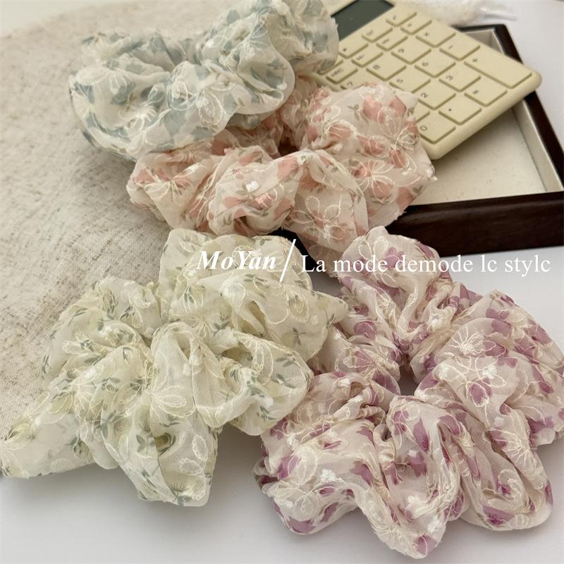 Mori Malla Estampada Bordada Anillo para el Cabello Intestino Grueso para Mujer 2024 Nuevo Sentido de Alta Gama Cuerda para el Cabello Vintage Flor para el Cabello