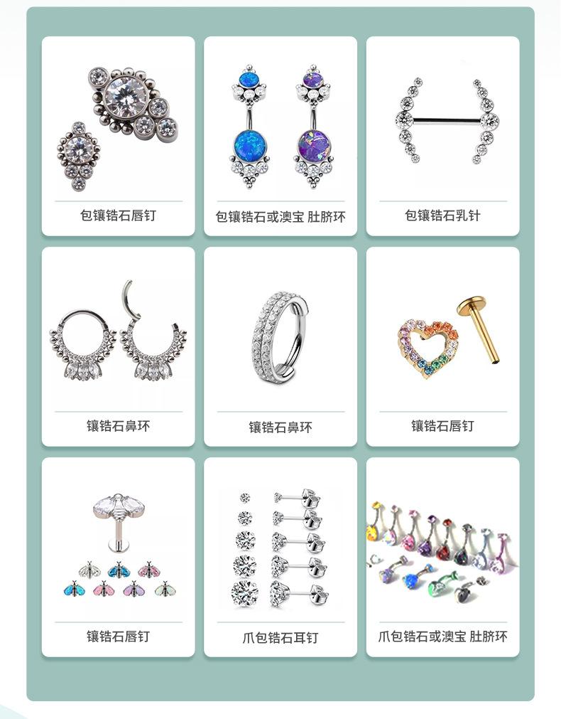 Aretes Populares Transfronterizos de Aleación de Titanio G23 Joyería para Mujeres Piercing Corporal Europeo y Americano Zircón Uña para la Lengua Uña para la Nariz Joyería al por Mayor