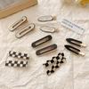 Horquilla de cuadros sin costuras para mujer, horquilla lateral sencilla con flequillo a cuadros en blanco y negro, accesorio para el cabello con pinza de pico de pato