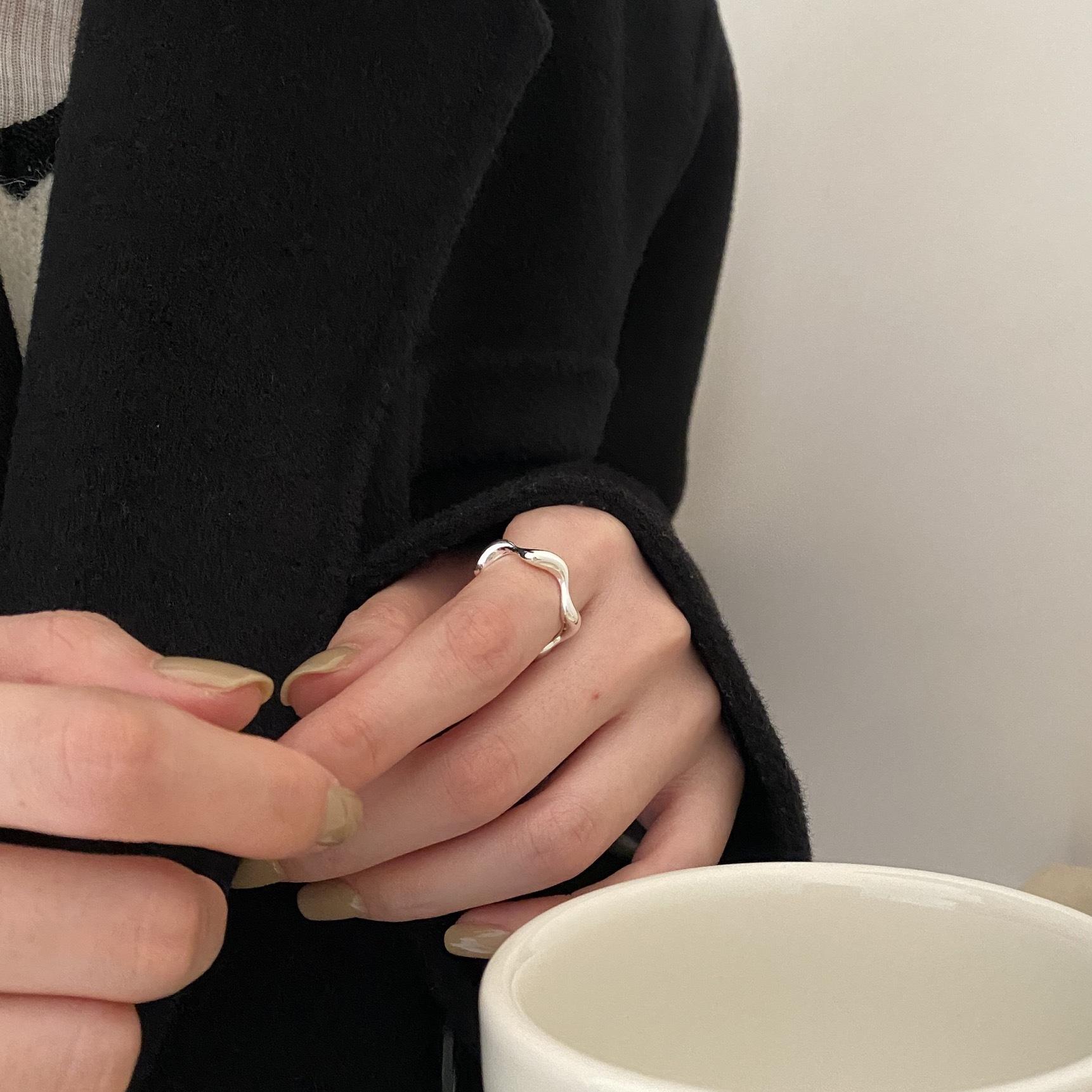 Anillo abierto de línea ondulada de diseño de Corea del Sur, personalidad nicho versátil, anillo de moda minimalista nicho ins