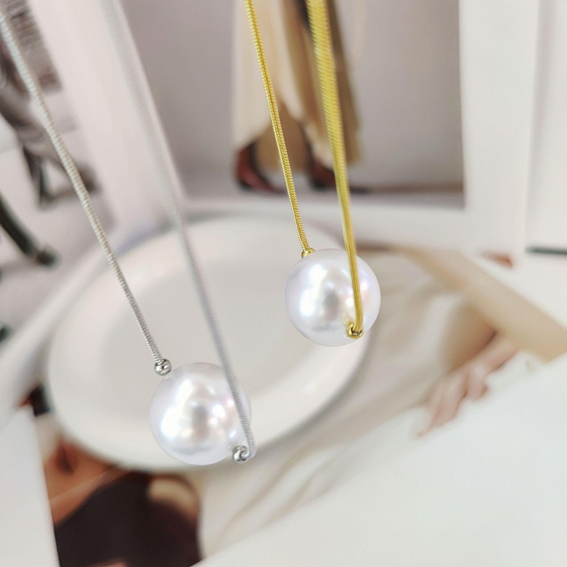 Collar de perlas para mujer, diseño de nicho, ligero, lujoso, estilo frío, cadena de clavícula simple y fresca con colgante.