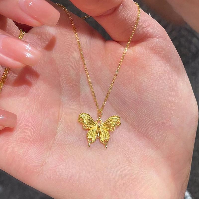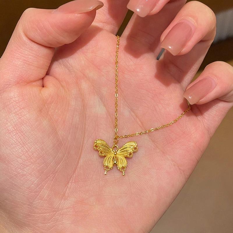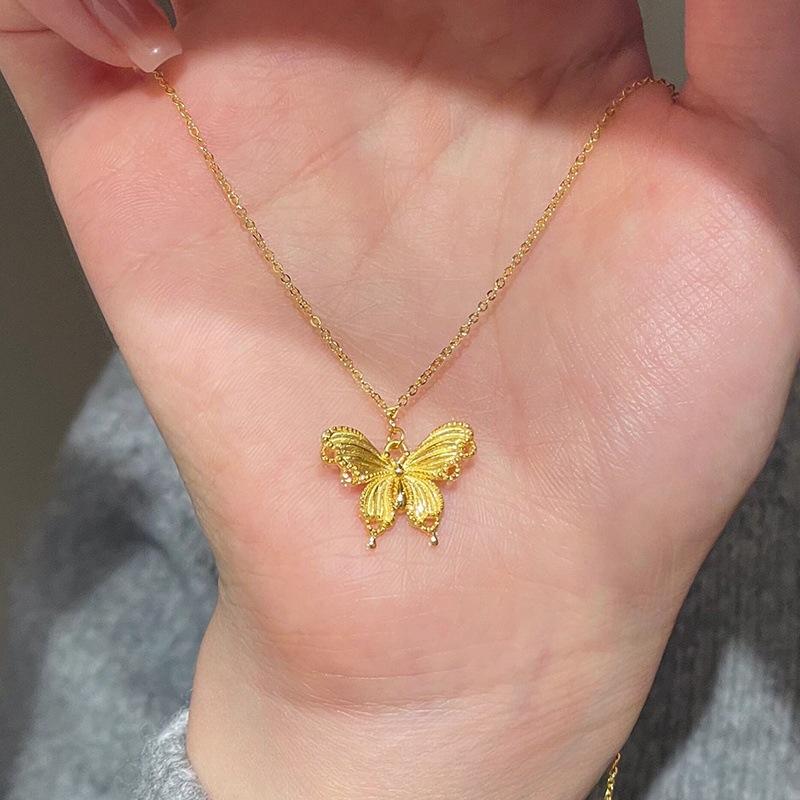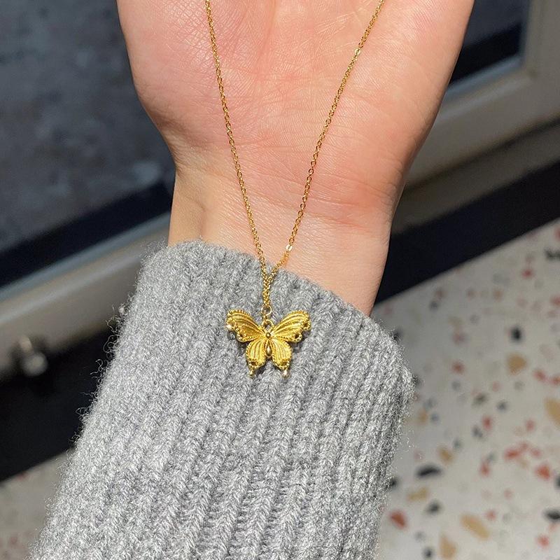 Collar con colgante de mariposa cepillada dorada con danza voladora de mariposa para mujer, cadena de clavícula de temperamento retro de alto grado, nicho que combina con todo