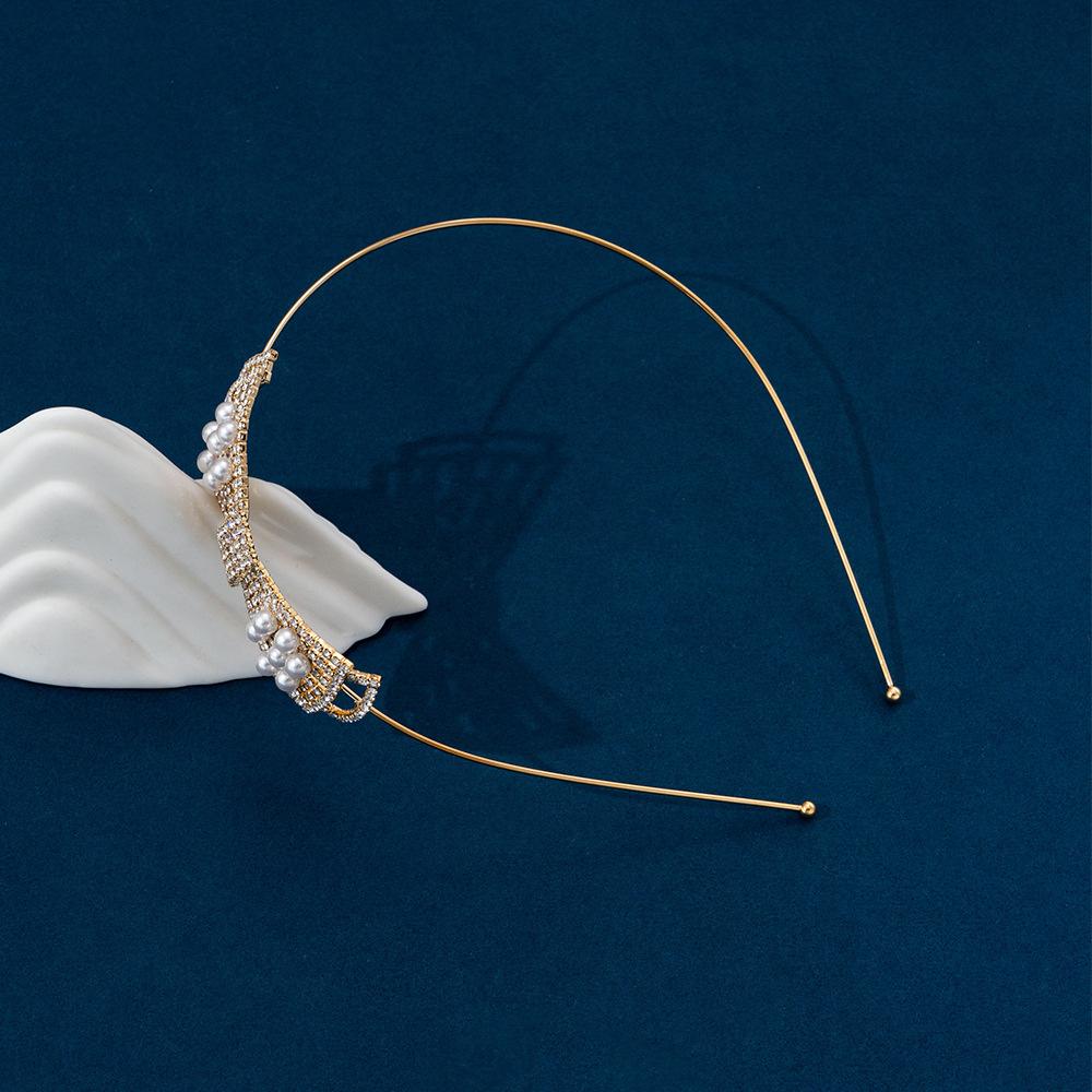 Diadema elegante con lazo de perlas y diamantes de imitación para mujer, estilo europeo y americano, combina con todo, bañada en oro, accesorios para el cabello
