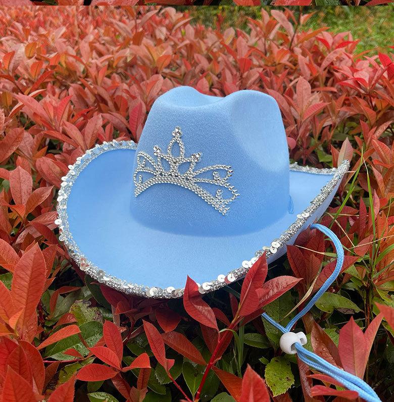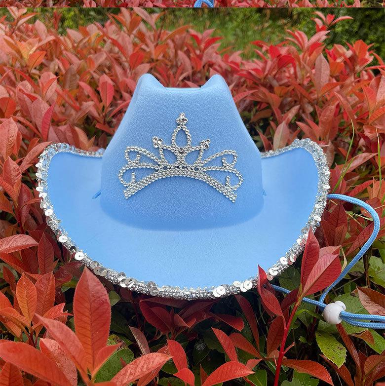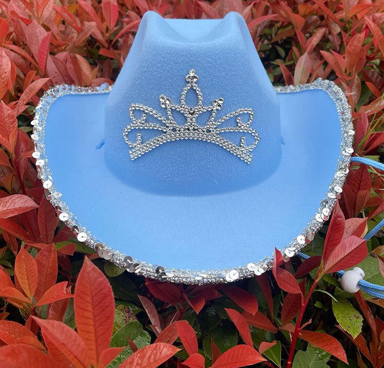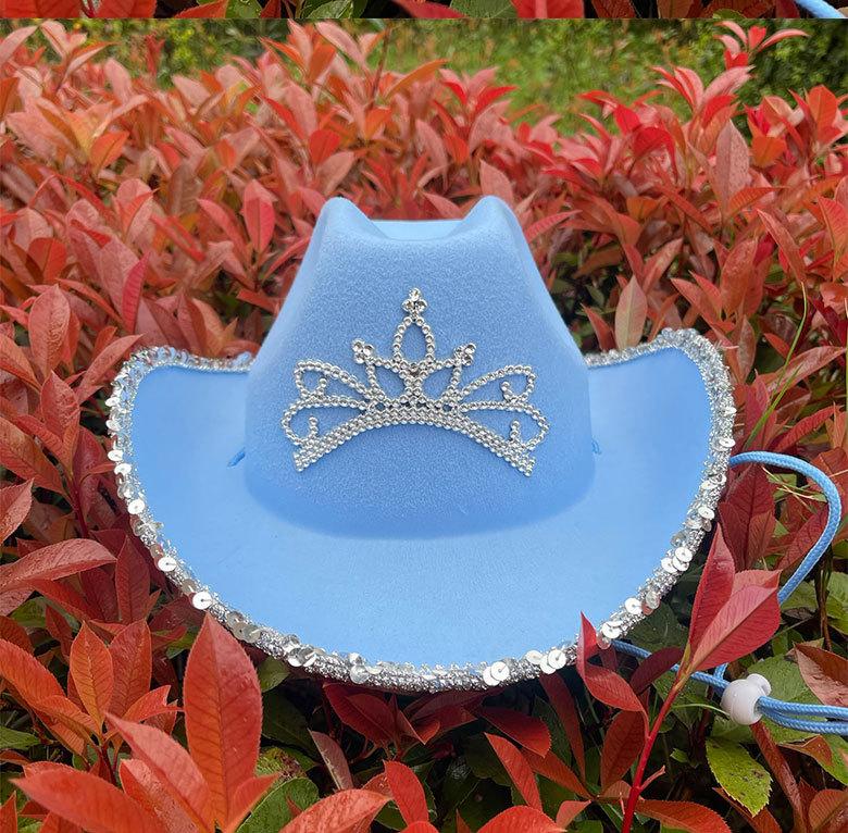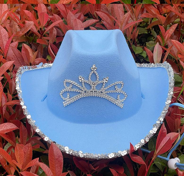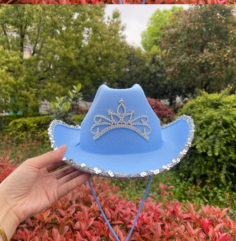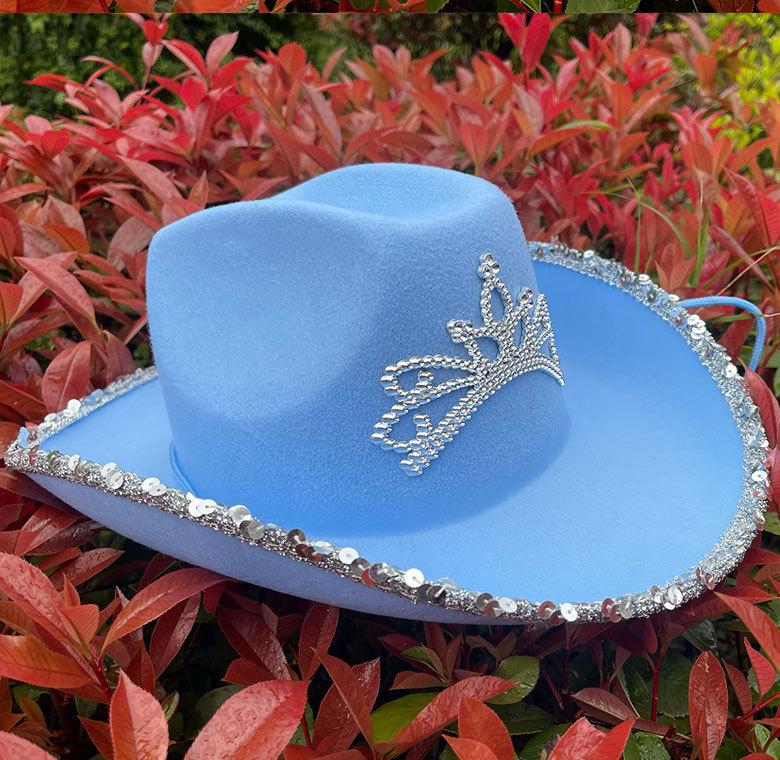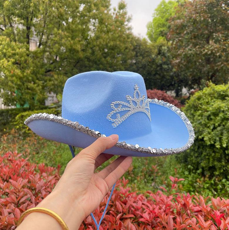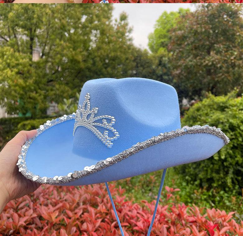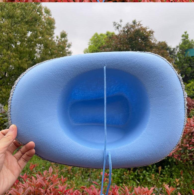 Sombrero navideño, sombrero de vaquero occidental, sombrero para festival, fiesta, escenario, actuación, sombrero con corona colorida, sombrero de mezclilla con lentejuelas