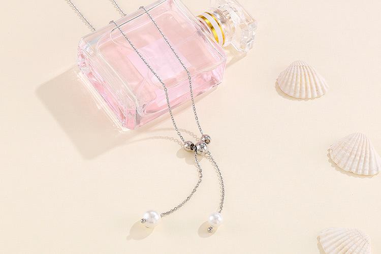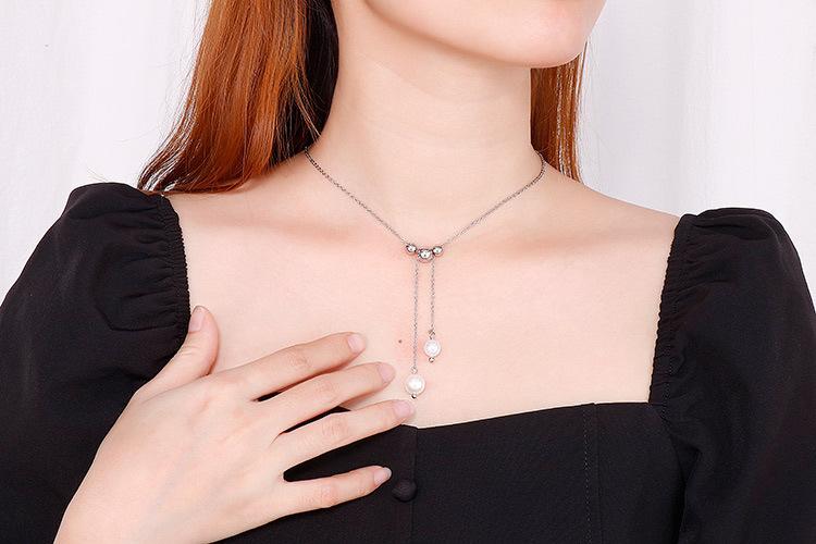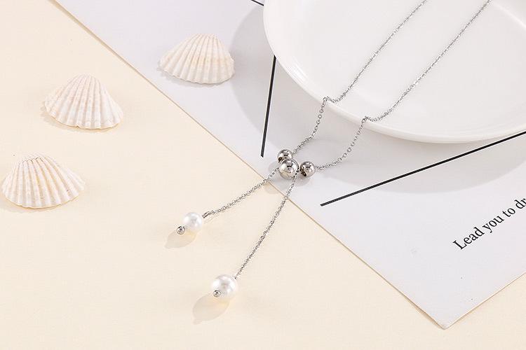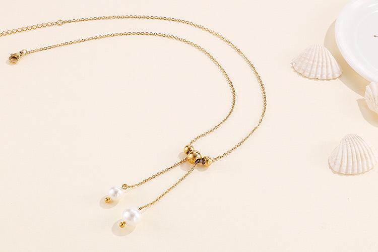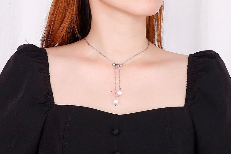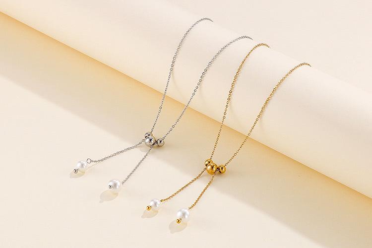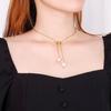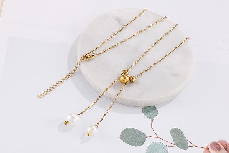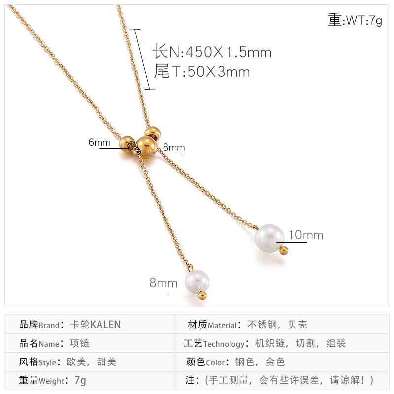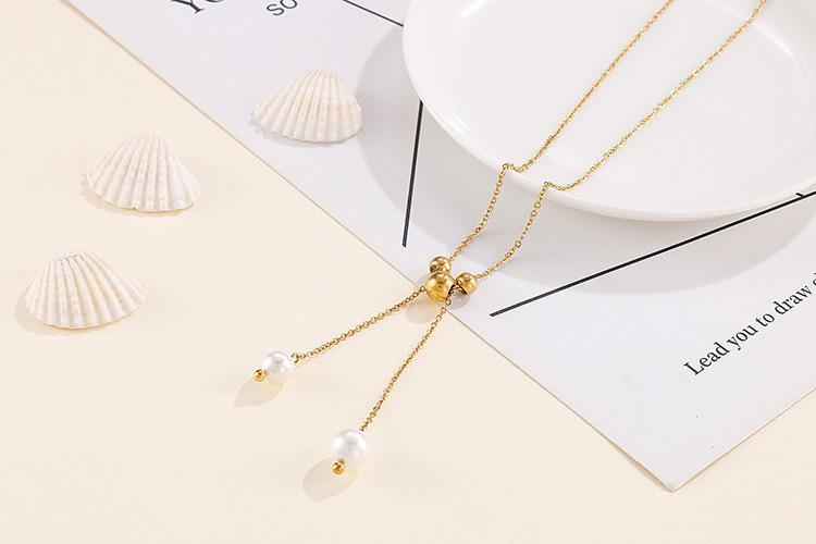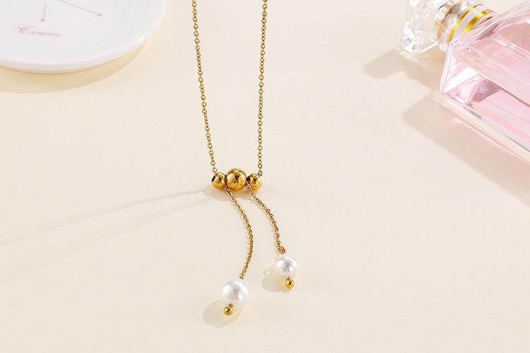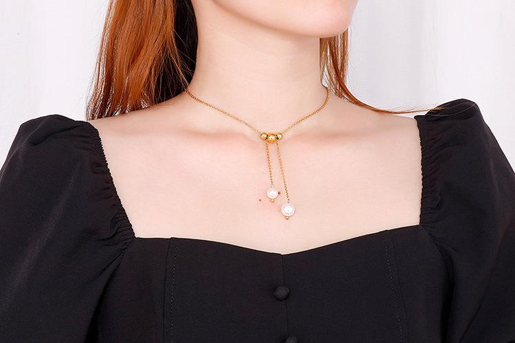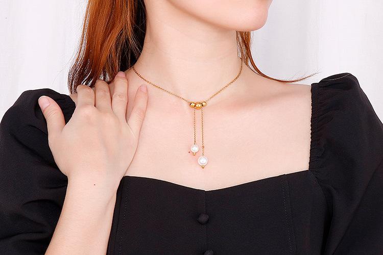 Collar de mujer con borla de bola de acero inoxidable y cadena dorada con diseño de temperamento europeo y americano con rueda de tarjeta