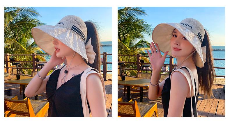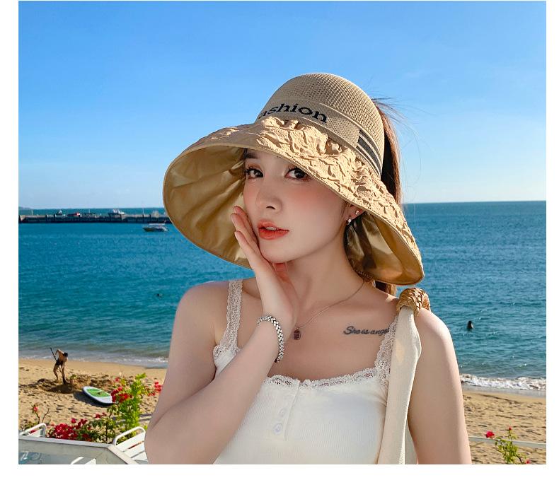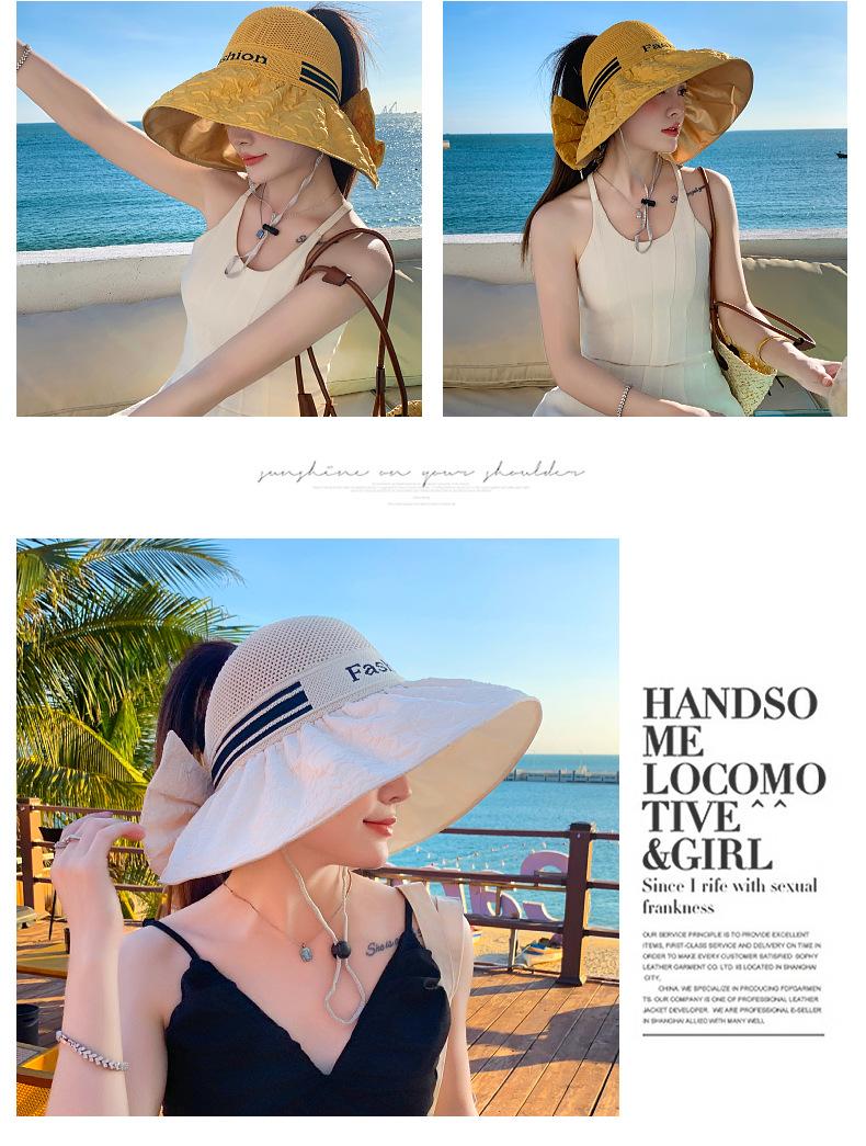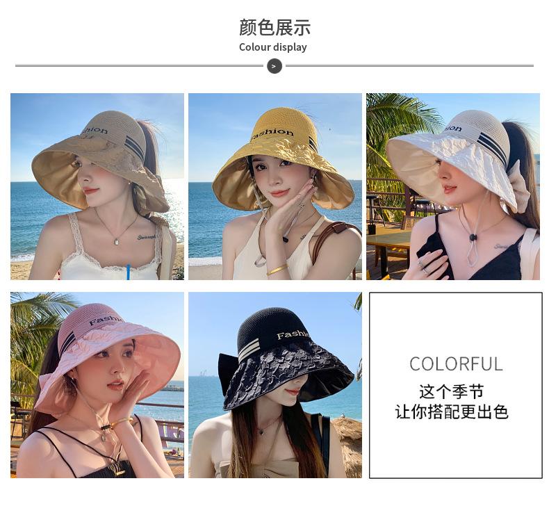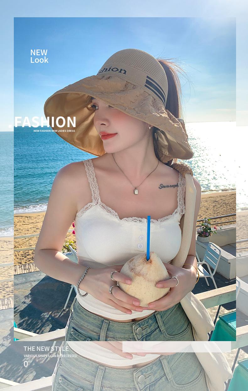 Sombrero para el sol para mujer, de verano, para exteriores, con letras, ala grande, sombrero de copa vacío, pegamento negro, sombrero para el sol transpirable, sombrero para el sol que combina con todo y cubre la cara.