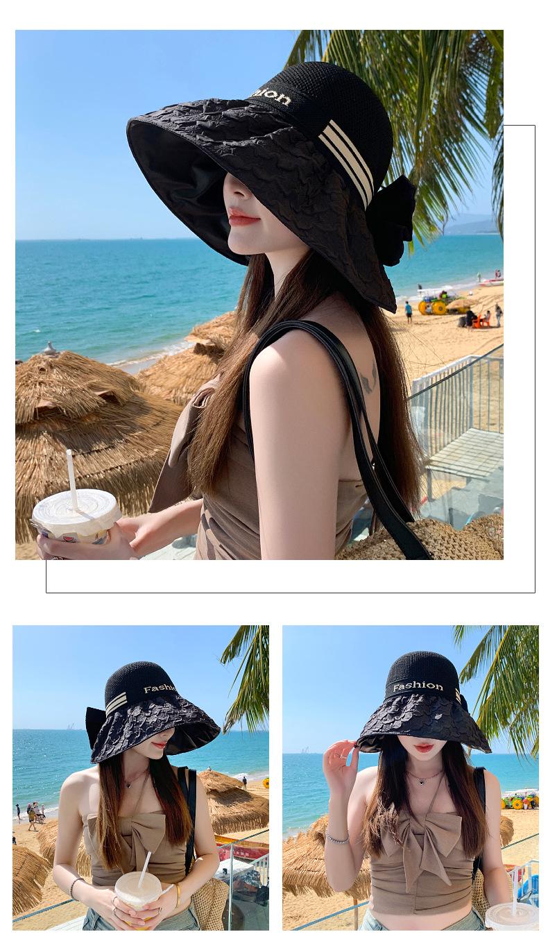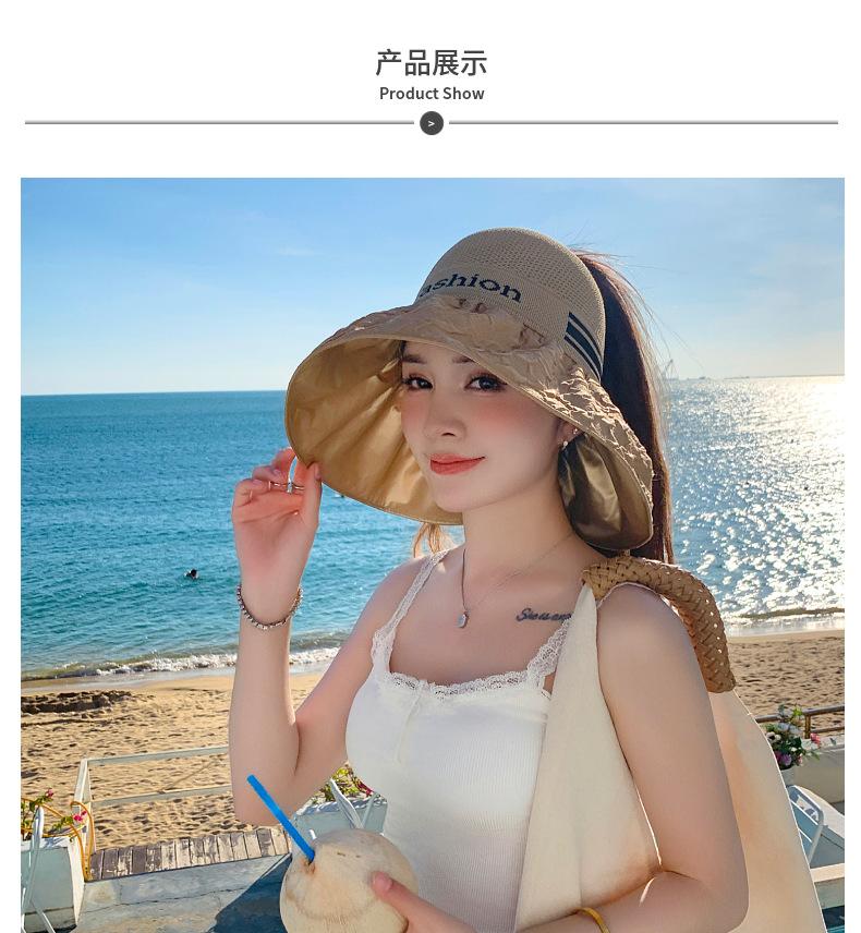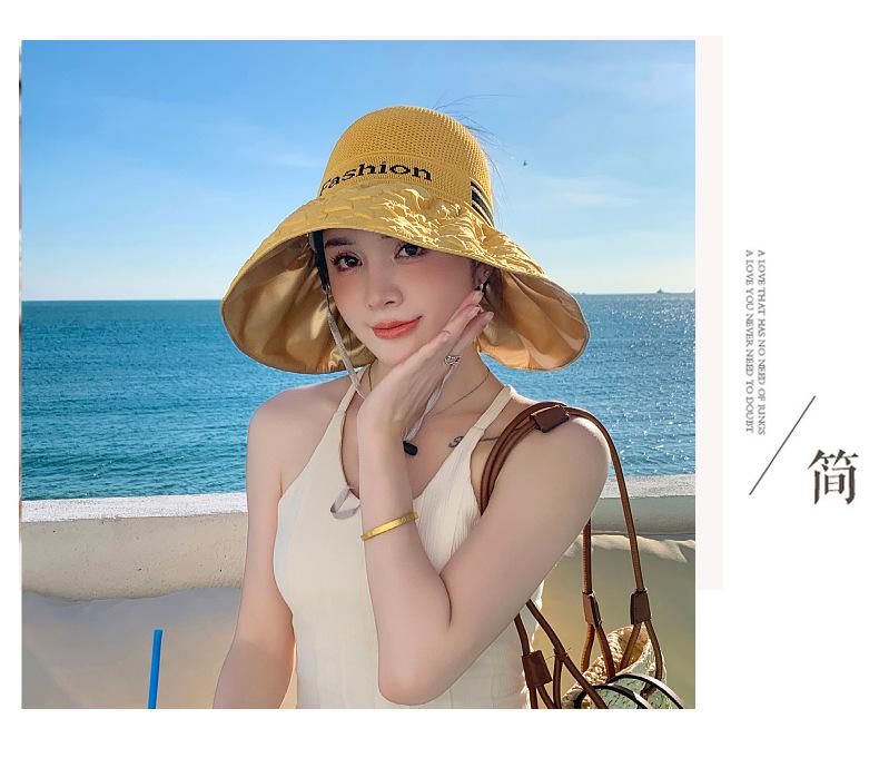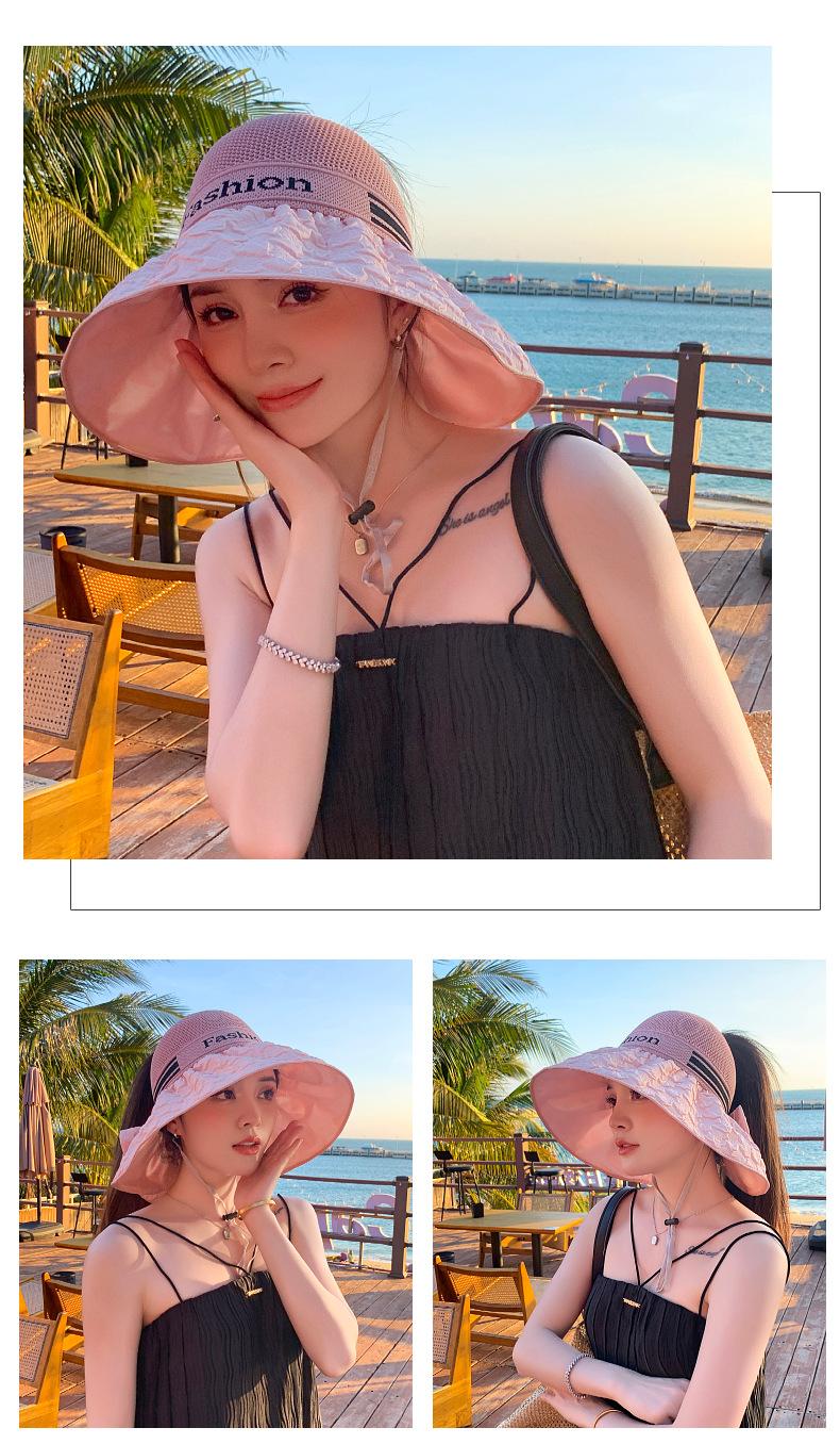 Sombrero para el sol para mujer, de verano, para exteriores, con letras, ala grande, sombrero de copa vacío, pegamento negro, sombrero para el sol transpirable, sombrero para el sol que combina con todo y cubre la cara.