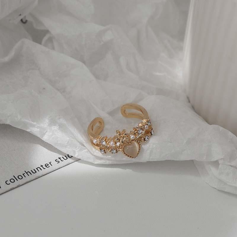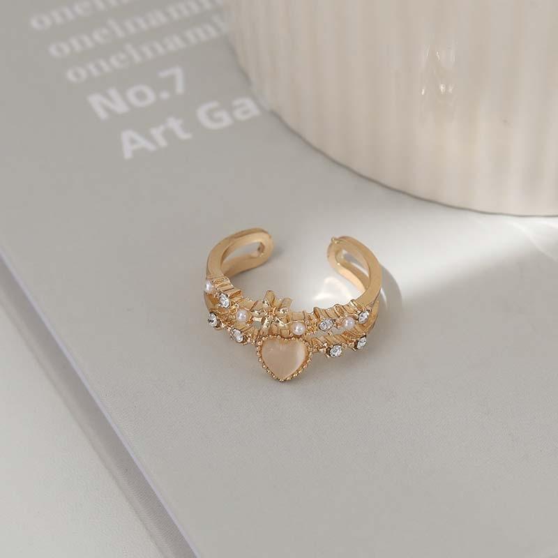 Versión Coreana Diseño Nicho Anillo Ajustable de Circonio Ojo de Gato Corazón de Alta Gama Anillo de Alta Gama de Lujo Ligero Trendy