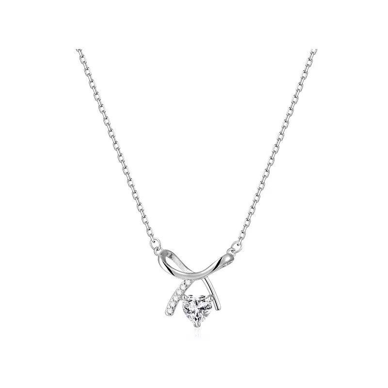 Exquisito collar de lazo de circón para mujer, accesorios de diseño de nicho de lujo ligeros con cadena de clavícula en forma de corazón de alta calidad al por mayor