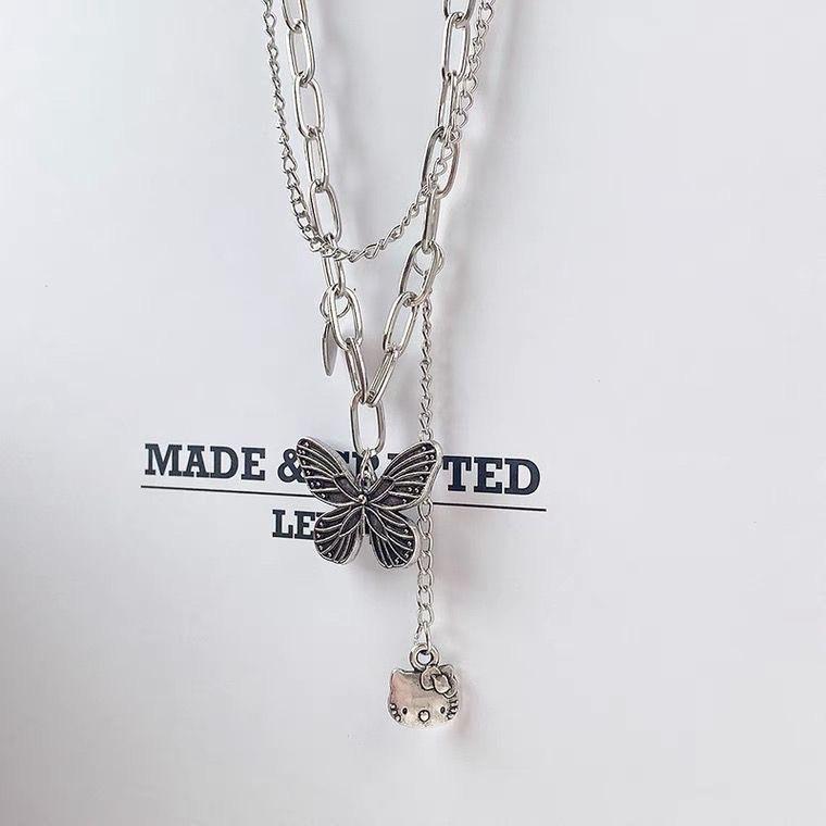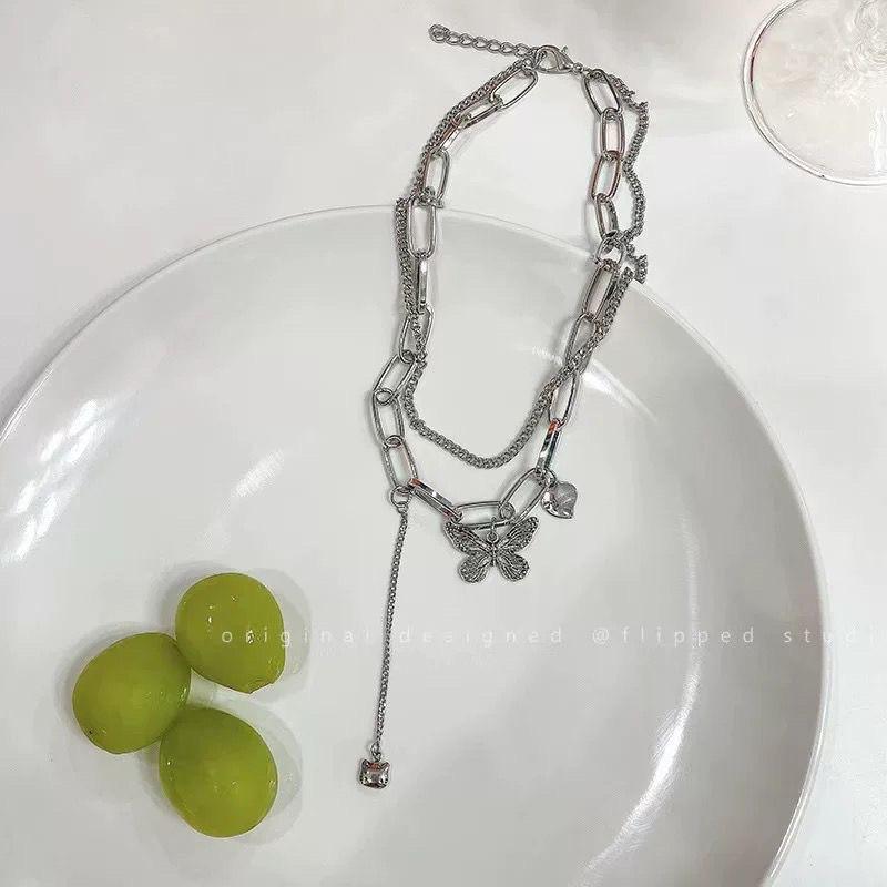Double-layer vintage butterfly necklace