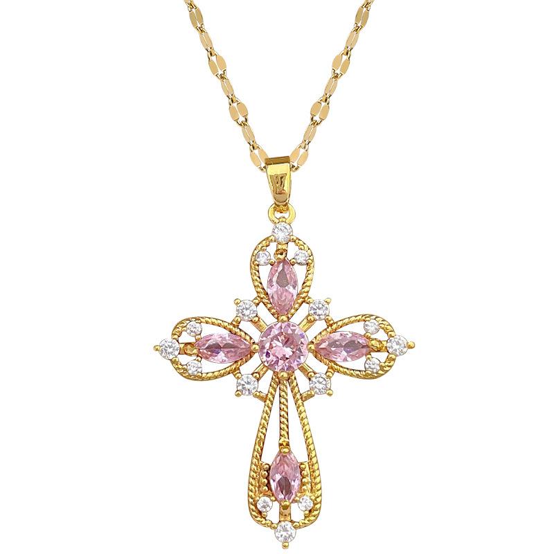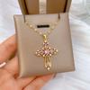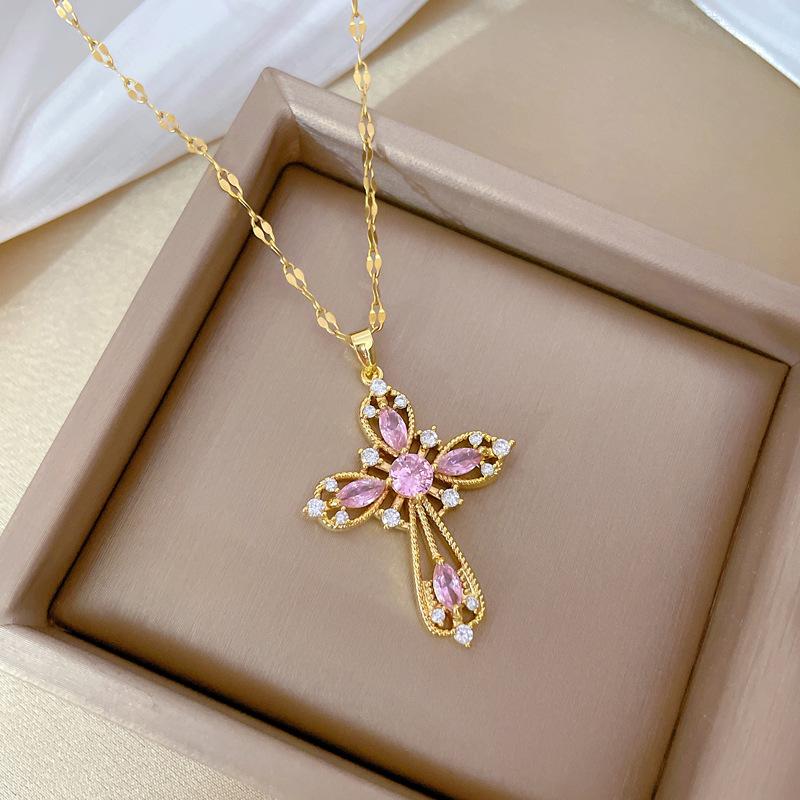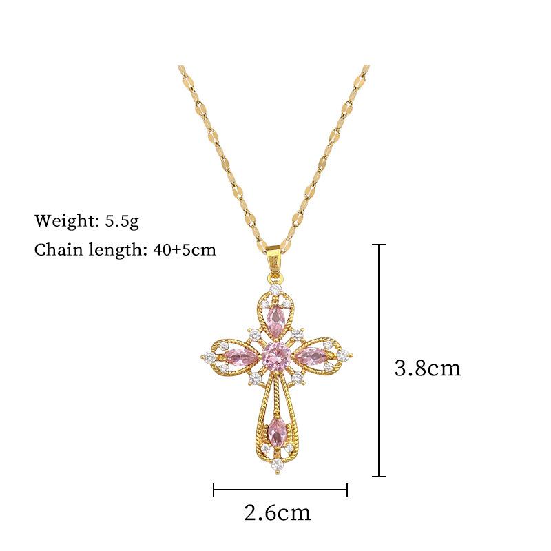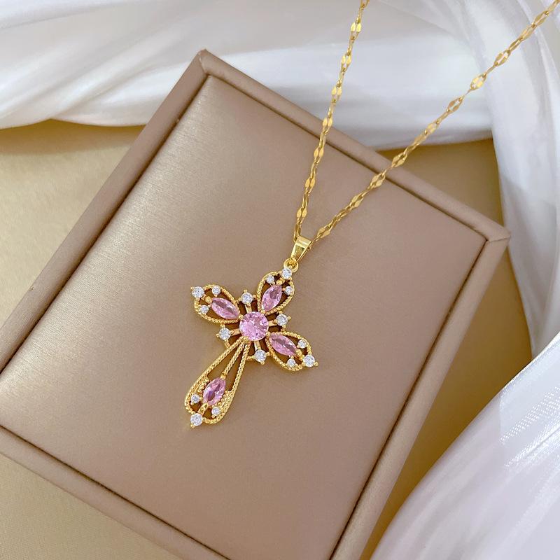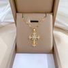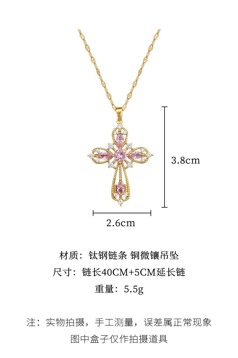 [Acero de titanio] Elegante collar de diamantes con cruz hueca, ligero y lujoso, cadena de clavícula para mujer, cadena de acero de titanio.