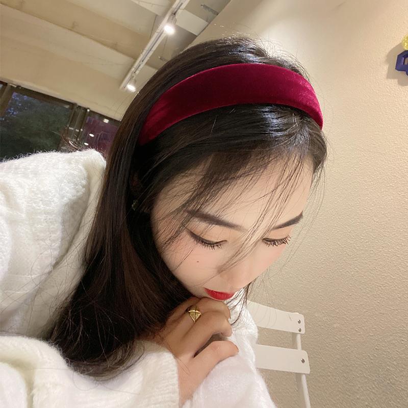 Banda para el cabello con esponja de terciopelo negro, banda para el cabello alta con forma de cráneo, banda ancha para el cabello estilo retro francés de verano para mujer, banda para el cabello roja de Internet coreana, banda para el cabello para lavarse la cara