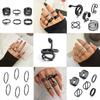 Europa y Estados Unidos transfronterizo nuevo juego de anillos articulados negros 5 piezas creativo retro serpiente cruz espiral anillo al por mayor