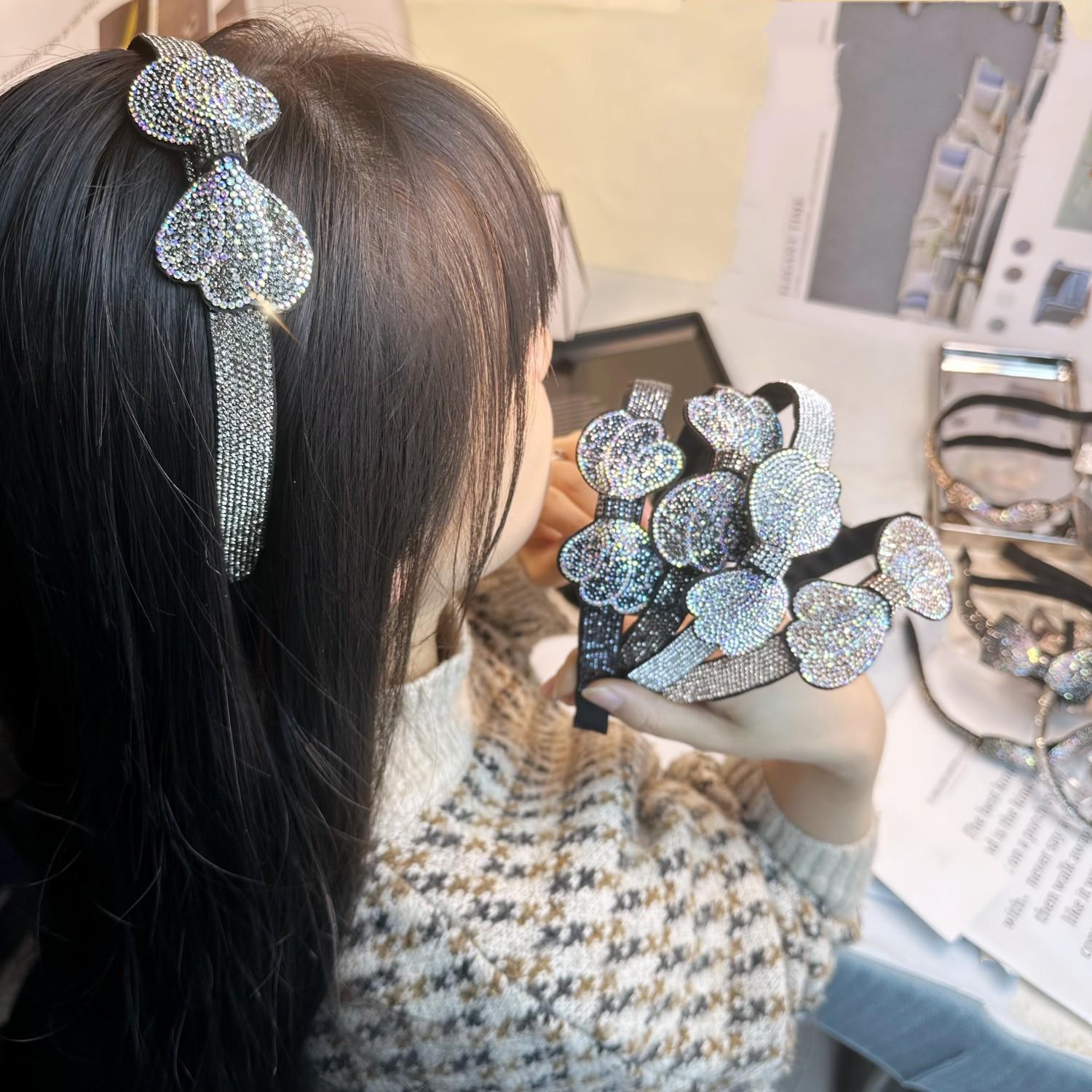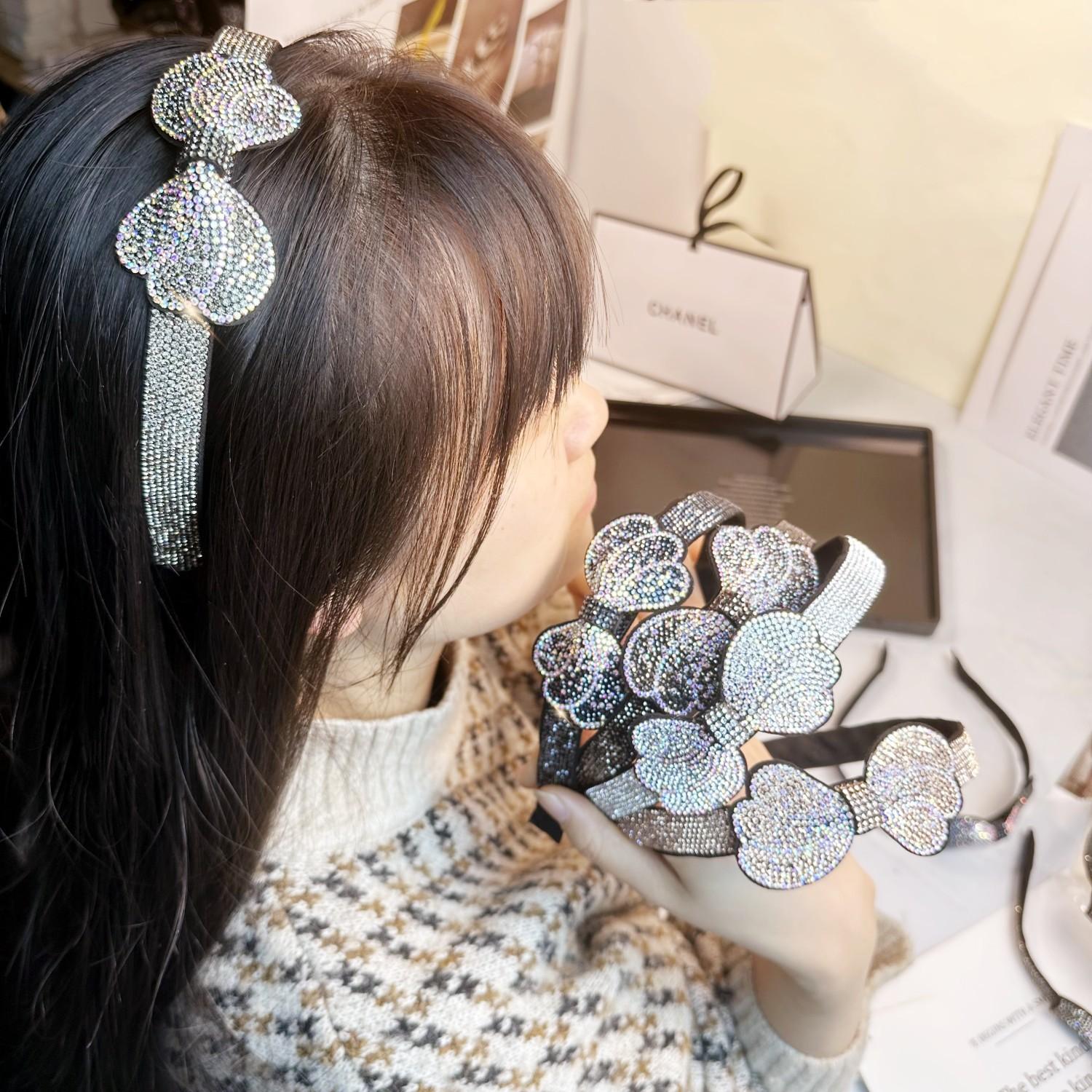 Diadema con lazo de diamantes de imitación de alta gama, estilo coreano 2023, ligera, de lujo, elegante, a la moda, con lazo que combina con todo, accesorios para el cabello