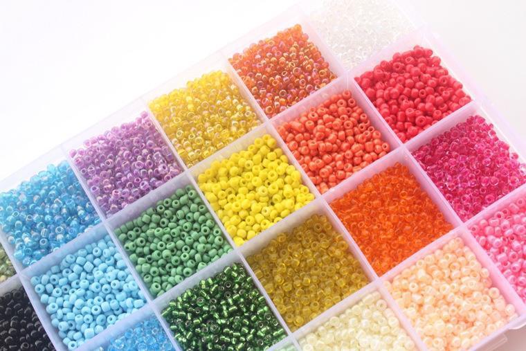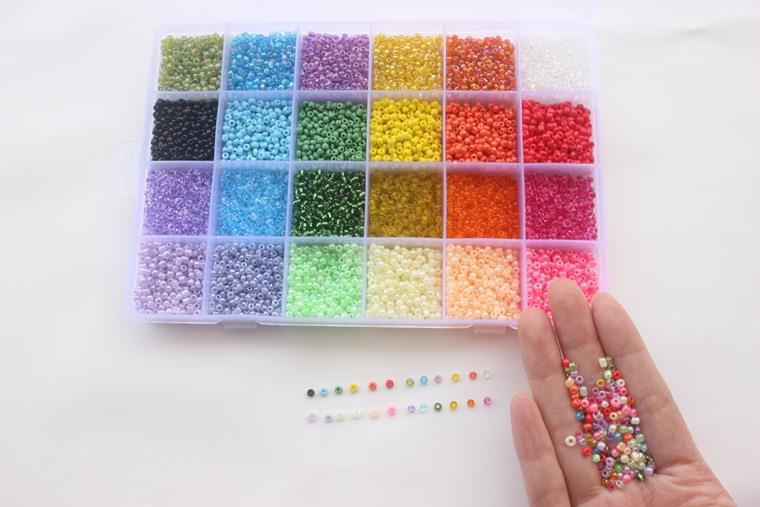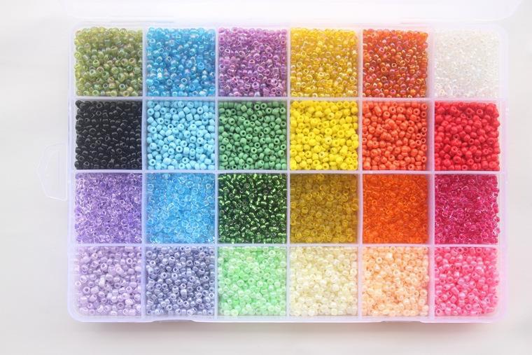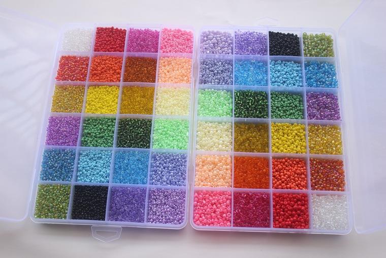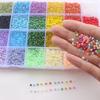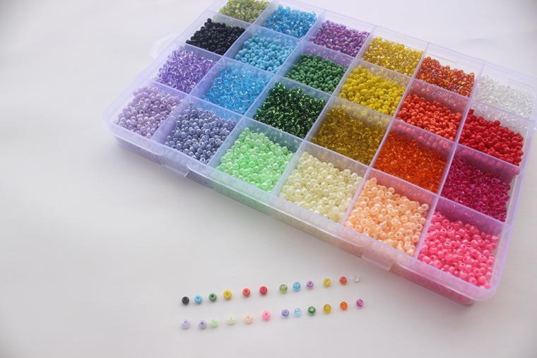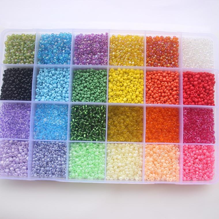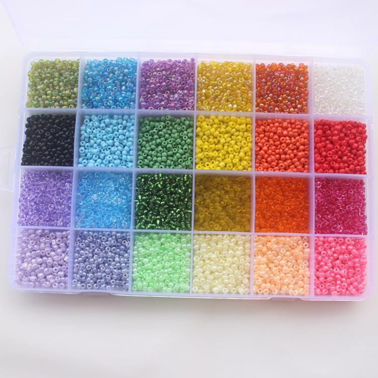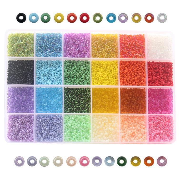【nombre del producto】Juego de 24 cuentas de mijo con rejilla, mezcla de colores AB, tinte para pintura, núcleo crema de 2 mm, caja de almacenamiento de 24000