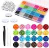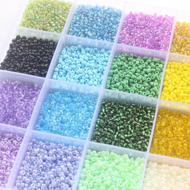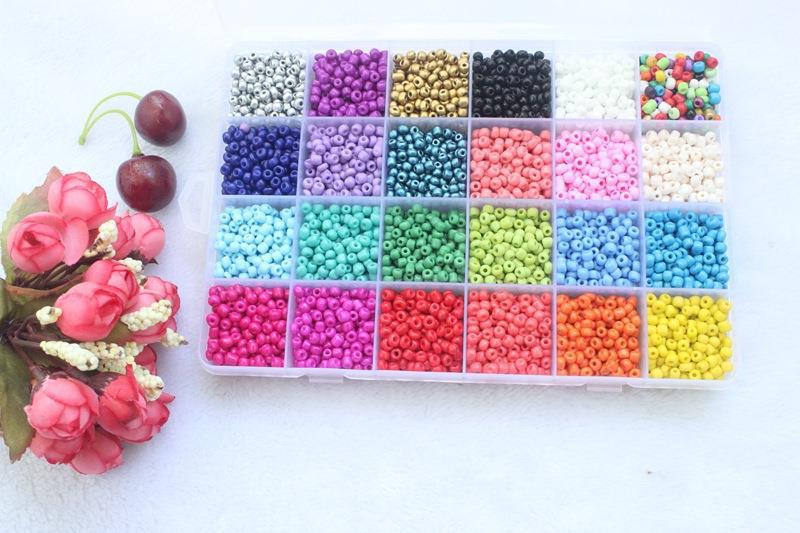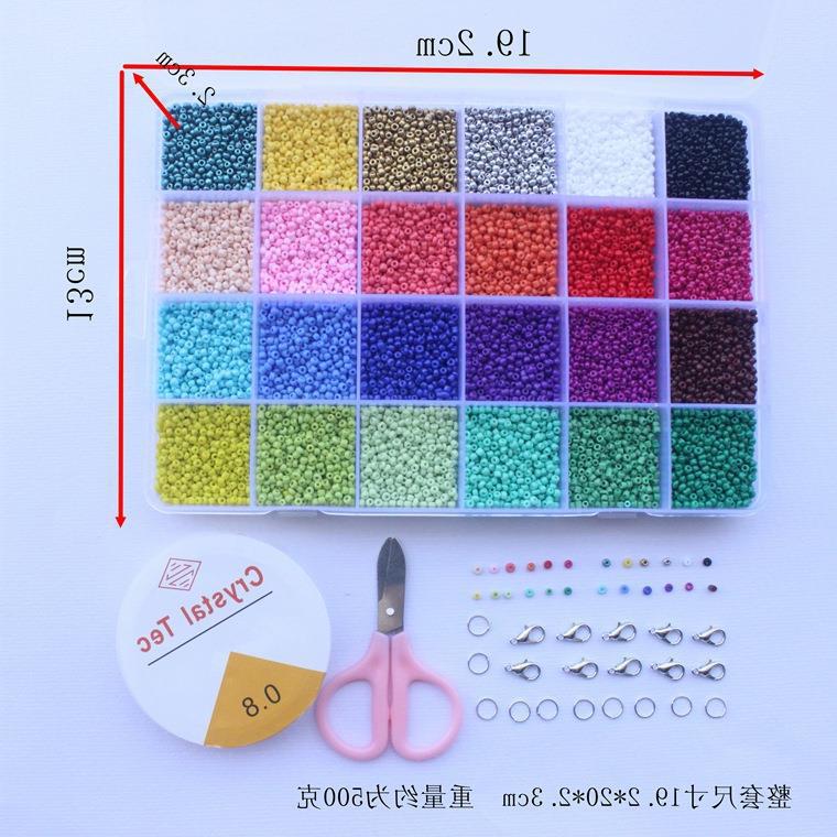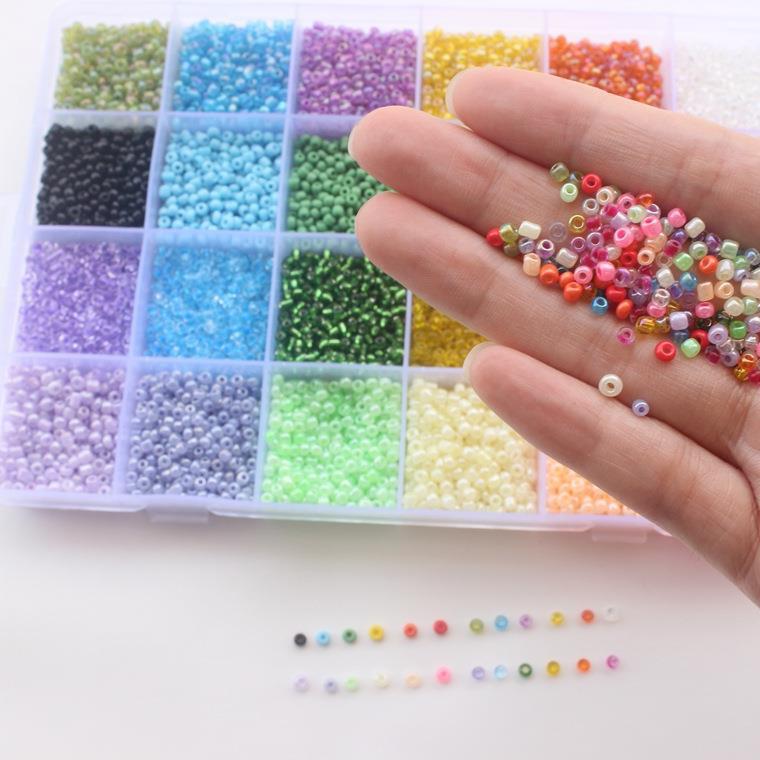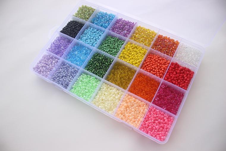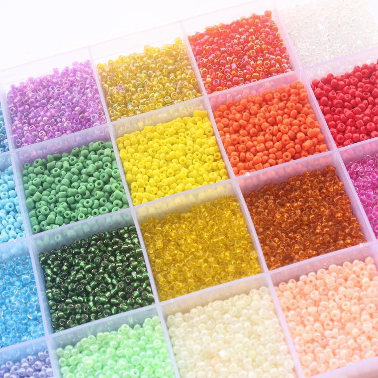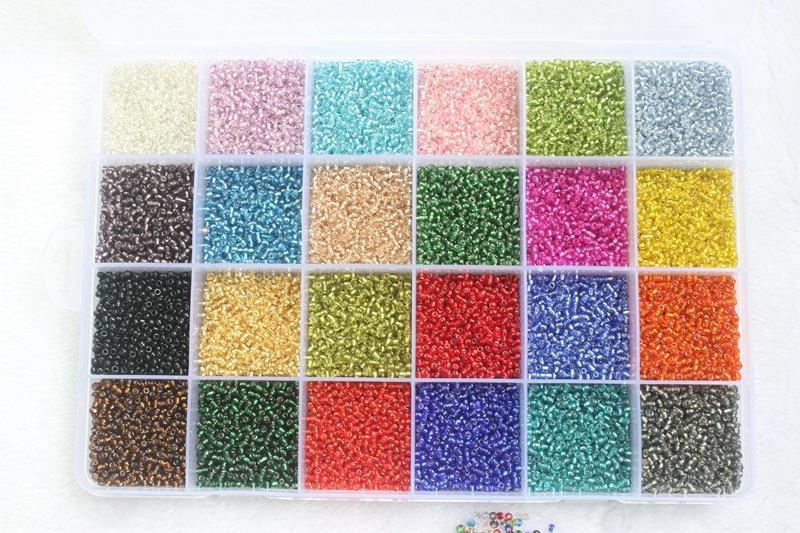 【nombre del producto】Juego de 24 cuentas de mijo con rejilla, mezcla de colores AB, tinte para pintura, núcleo crema de 2 mm, caja de almacenamiento de 24000