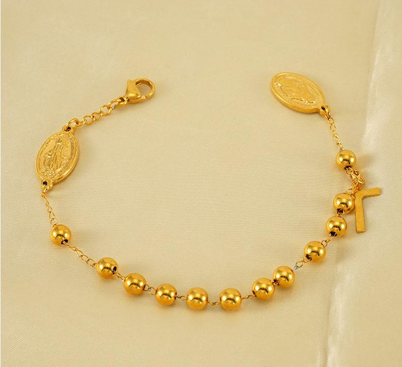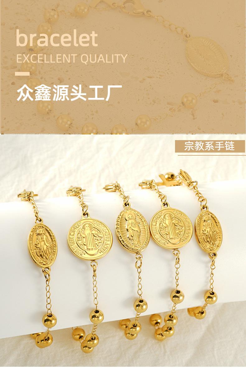 Pulsera de Acero Inoxidable con Cuentas Serie Europea y Americana Transfronteriza Unisex Cruz Pulsera Virgen María