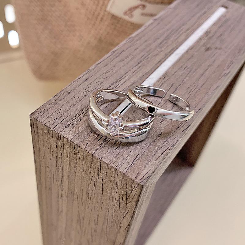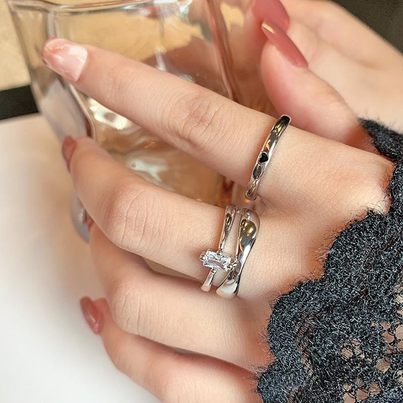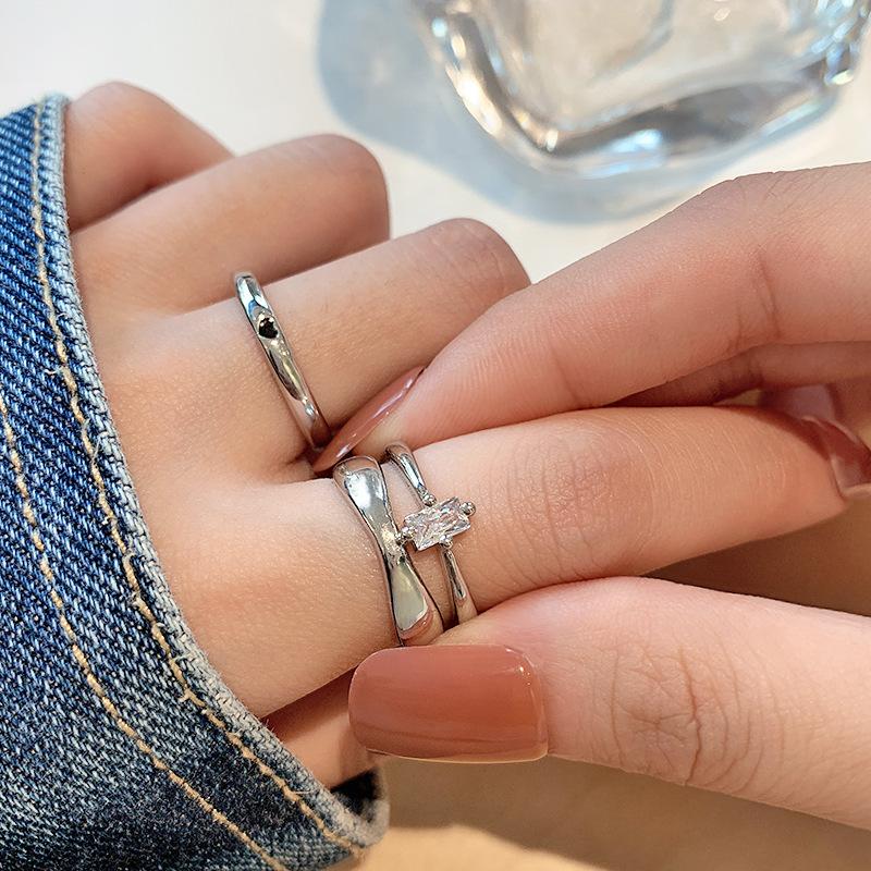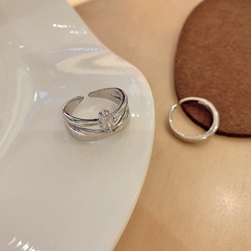 Diseño Nicho Doble Capa Abertura Diamante Cuadrado Anillo Elegante Estilo Coreano Lujo Ligero Sentido Avanzado Anillo de Dedo Ajustable ins Mujeres
