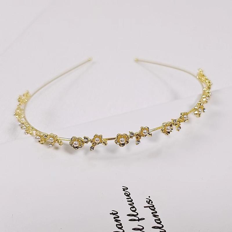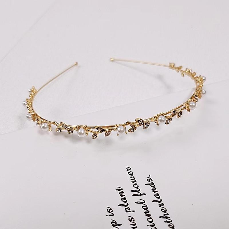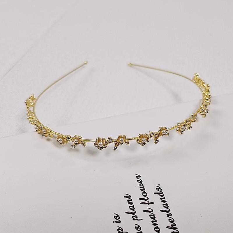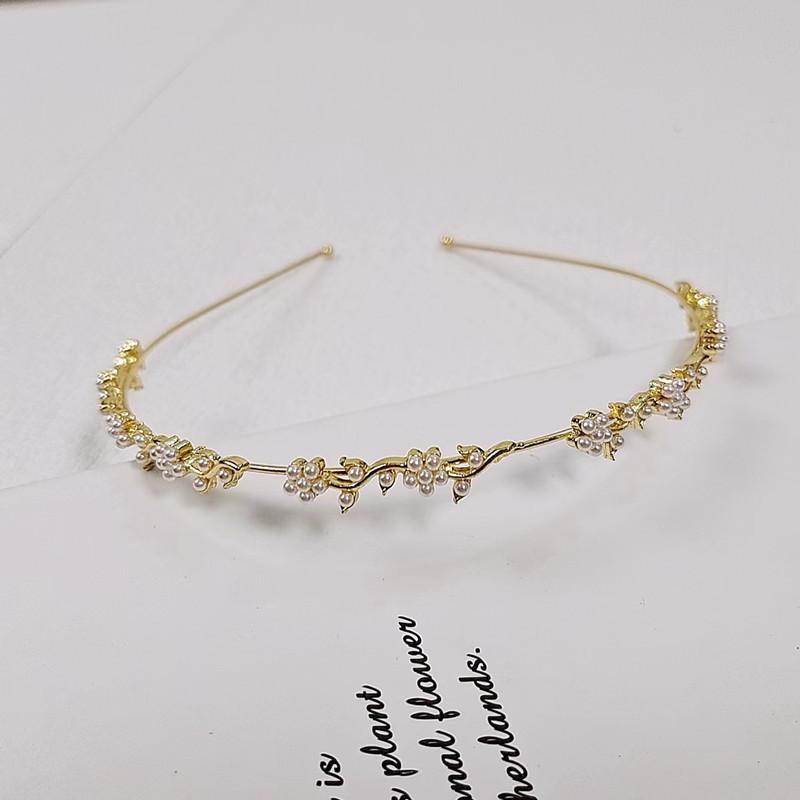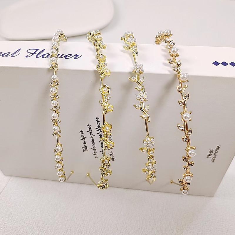 Accesorios coreanos para el cabello, banda metálica para el cabello, pinza para el cabello con hojas vintage y perlas, diadema barroca con flores pesadas para mujer