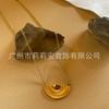 Collar moderno con colgante de semicírculo de cadena regular simple con diseño de nicho de acero de titanio bañado en oro de 18 quilates, estilo INS, P223318