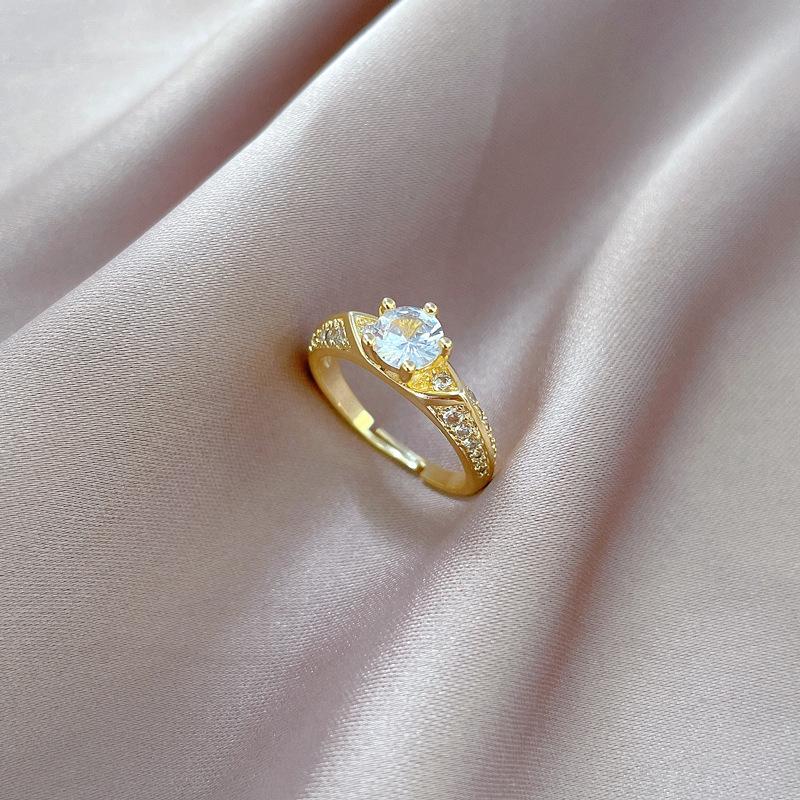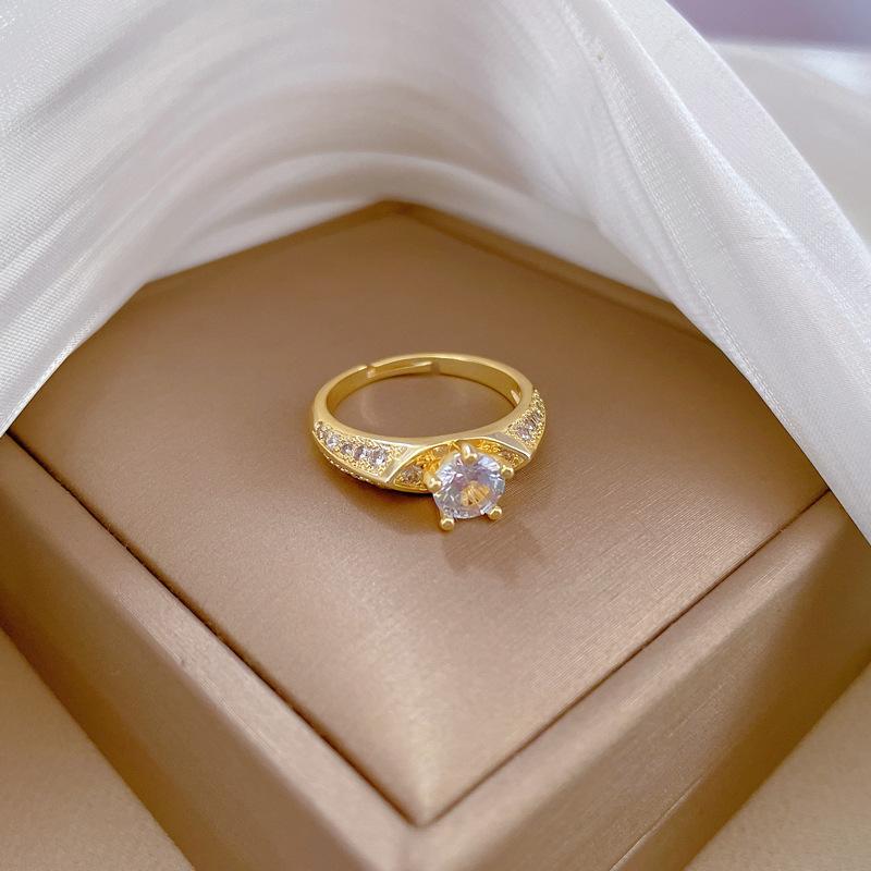 [Oro Real] Anillo de Diamantes Completos Ocho Corazones y Ocho Flechas Apertura Ajustable Joyería Simple Anillo Japonés Anillo de Pareja