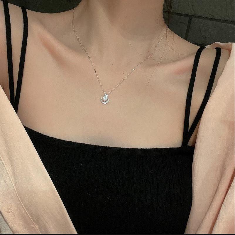 Collar de luna y estrella de moda 2022 para mujer, de nicho de celebridades de Internet, ligero, de lujo, cadena con colgante simple, venta al por mayor