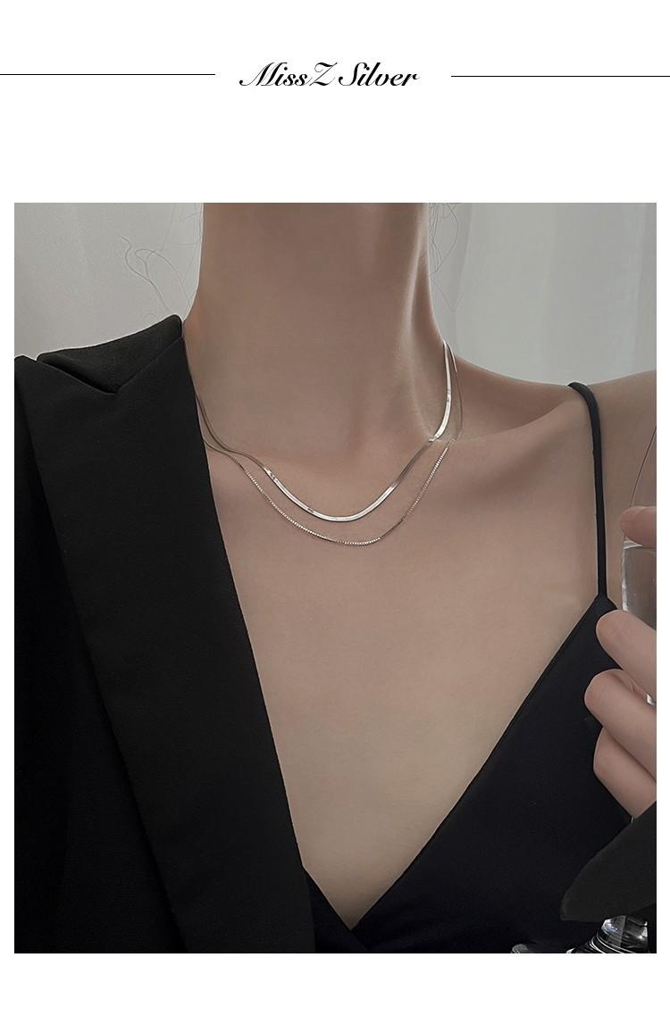 Collar de doble capa apilado, estilo frío, sencillo, chapado en plata, cadena de clavícula para mujer 2021.