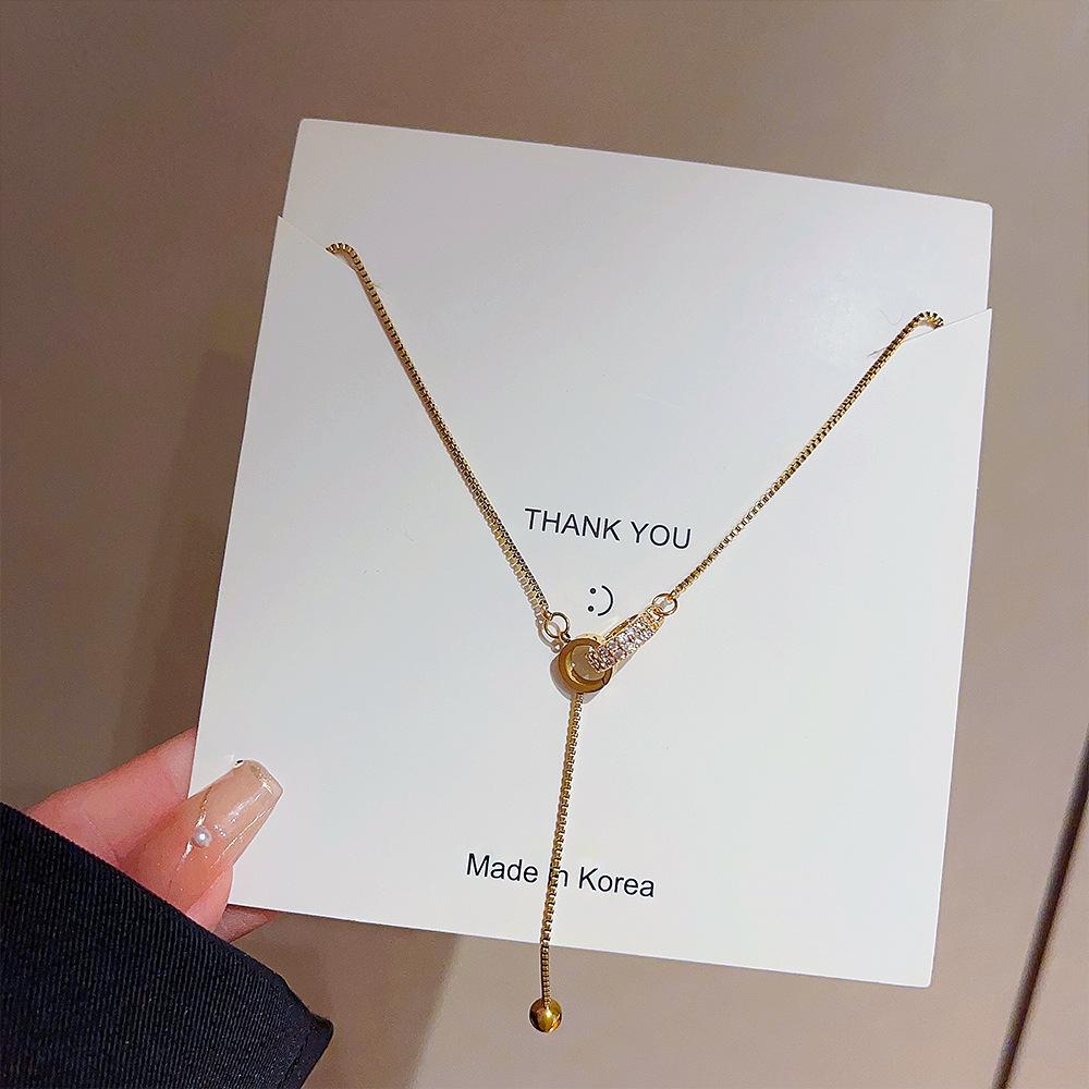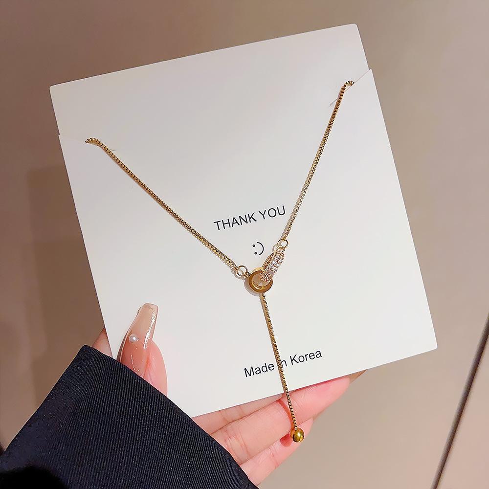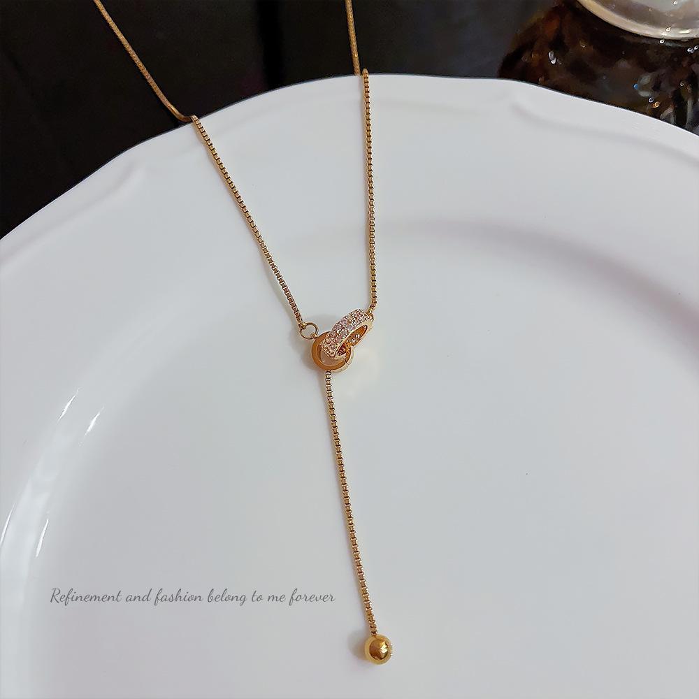 Collar de acero de titanio con borlas estilo japonés-coreano, sin color, para mujer, diseño de nicho de lujo ligero, elegante y de alta gama, cadena de lana.