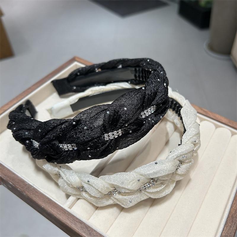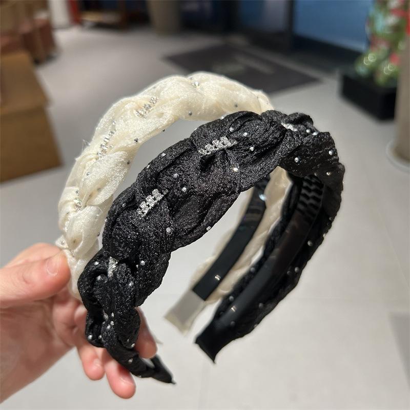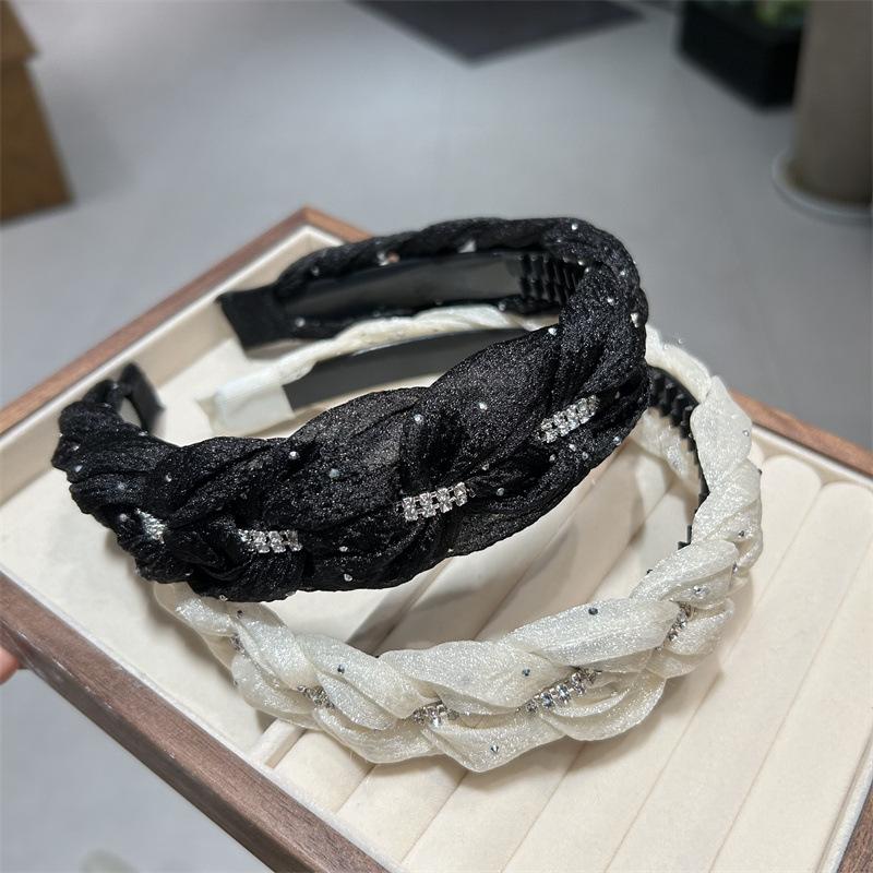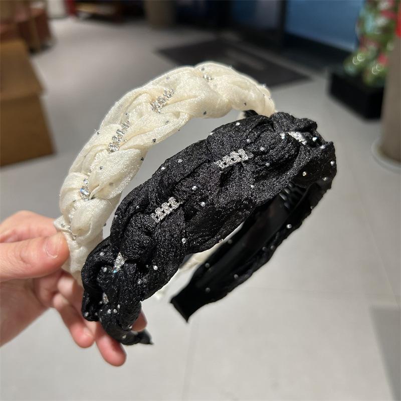 Diadema de estilo coreano con diseño de torcedura, alta gama, refinada y alta craneal, nueva diadema de alta gama con diamantes de imitación, elegante diadema con sello para el cabello lavado.