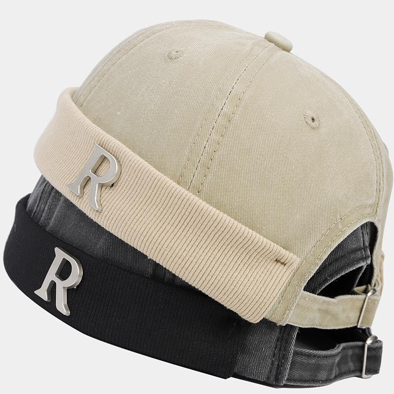Logotipo de letra R metálica sombrero retro color melón moda primavera verano calle hip hop personalidad sombrero de arrendador sombrero parasol