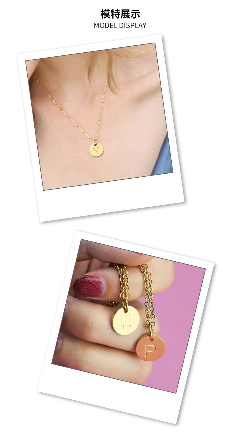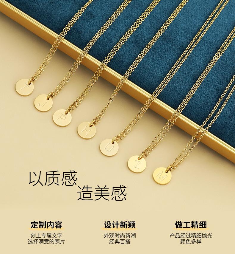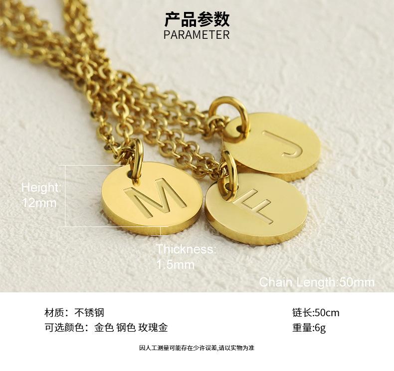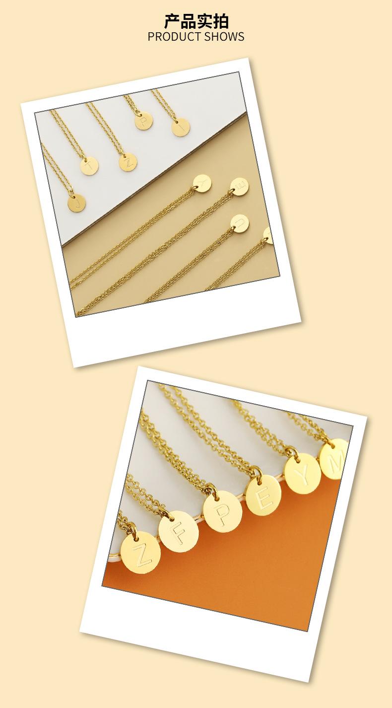 Collar redondo con letra de acero inoxidable nuevo transfronterizo colgante de 26 letras inglesas transfronterizo europeo y americano cadena de clavícula femenina