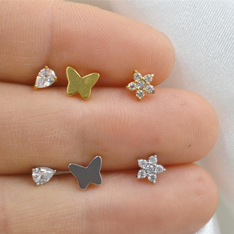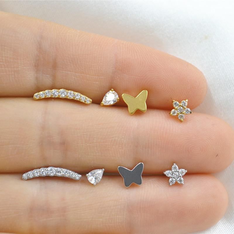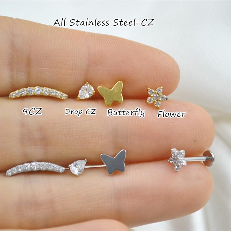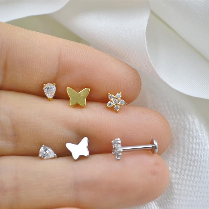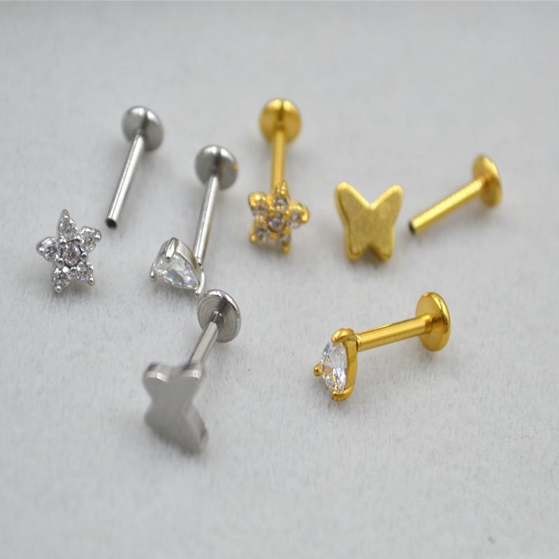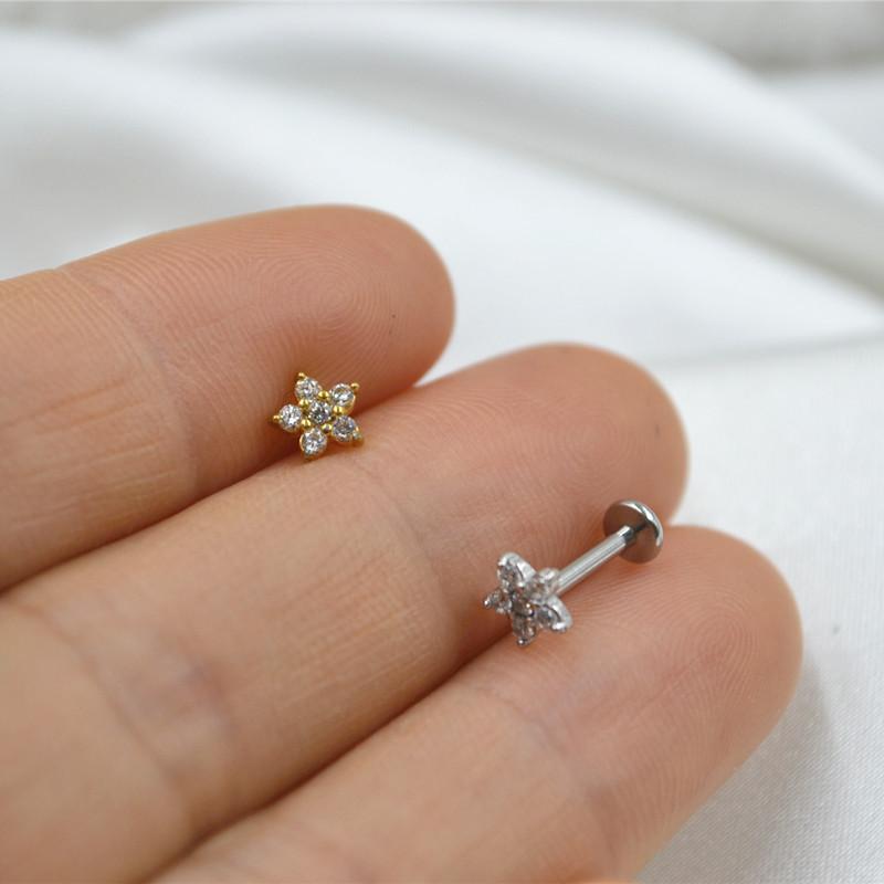 Pendientes de acero inoxidable con circonitas para labios y huesos de oreja, populares en Europa y América.