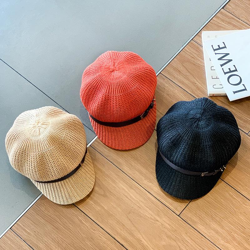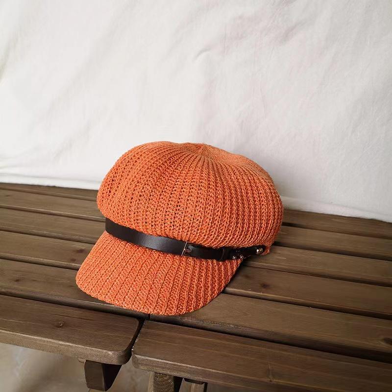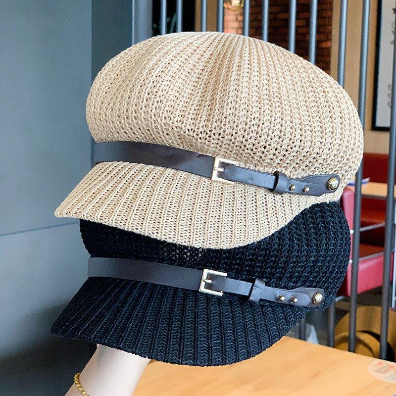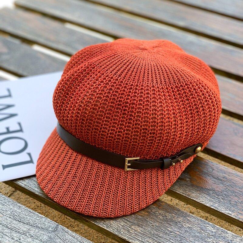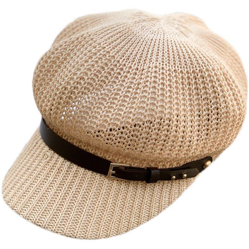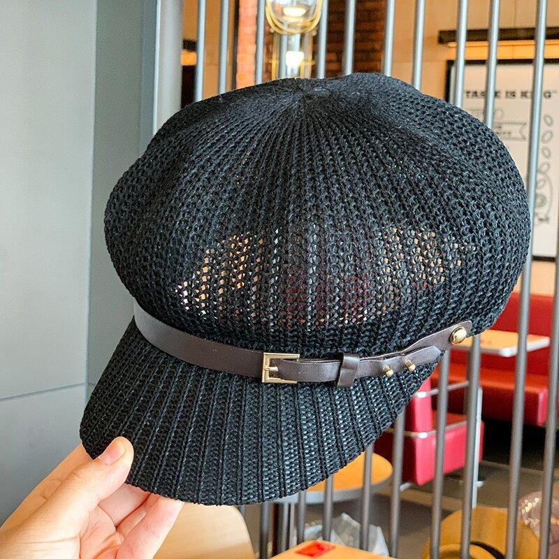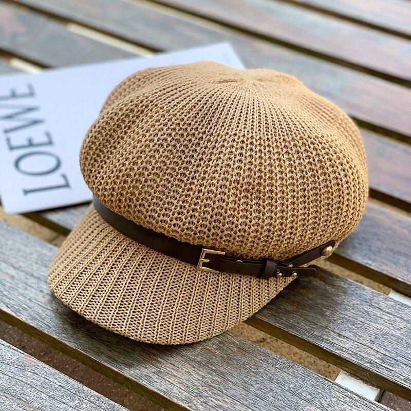 Sombrero de Mujer Estilo Japonés Marca de Moda de Internet Cinturón Gorra Octogonal Combinable Verano Lino Transpirable Hueco Boina Sombrero para el Sol
